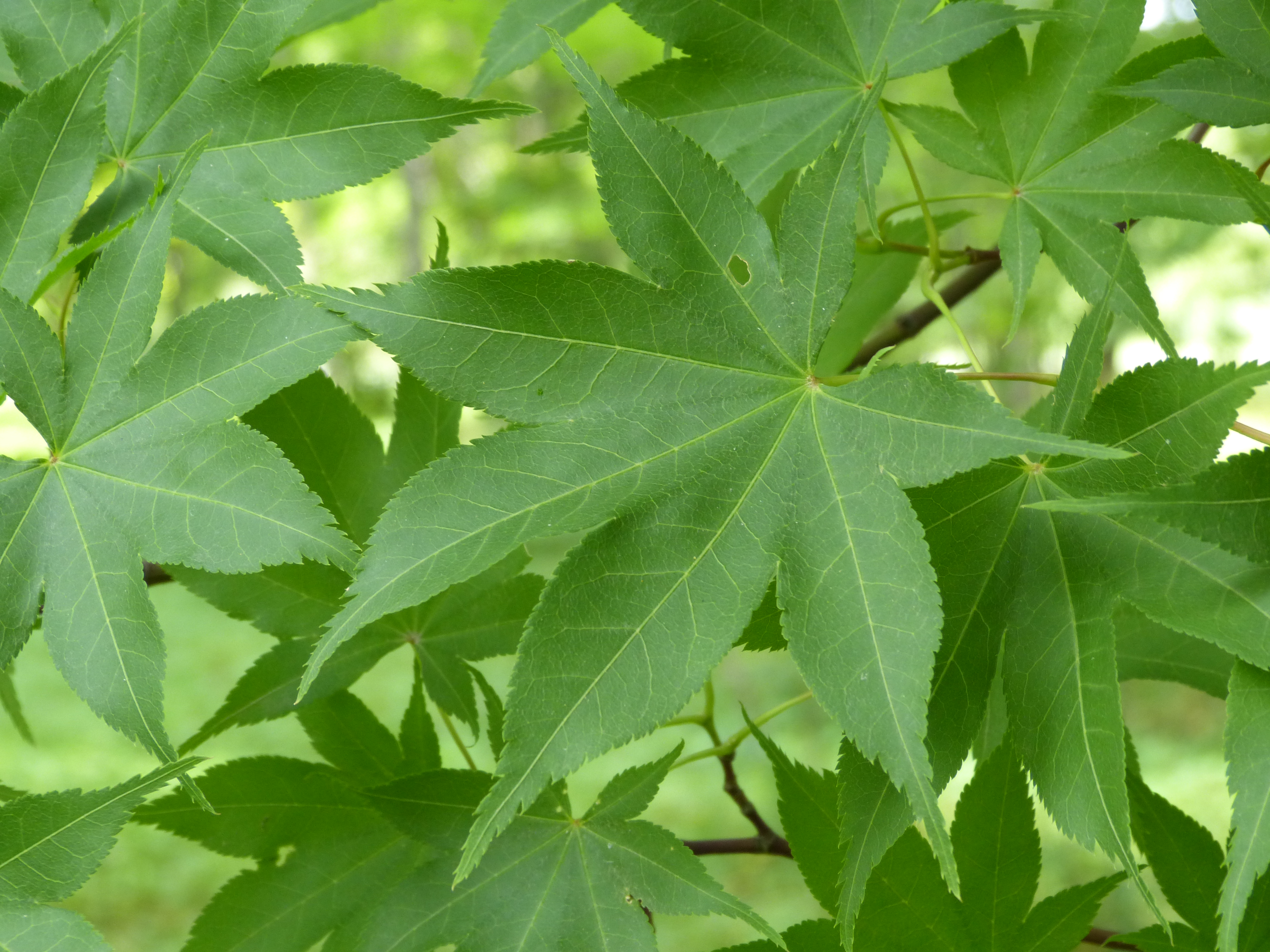 Morfoloģija. Kokveidīgs krūms vai neliels koks, savvaļā līdz 10 m vai augstāks. Miza pelēka līdz pelēcīgi gaišbrūna, gluda. Jaunie dzinumi sarkanīgi zaļi, kaili. Lapas parasti ar 7 daivām, retāk ar 5 vai 9 daivām, 8,5-12 cm garas, 7-13,5 cm platas. Daivas olveida, nosmailotas, ar zāģzobainu malu. Ziedkopa vairogveida, nokarena. Spārnuļi 1,5-2 cm gari. Spārni izplesti taisnā vai platā leņķī. Riekstiņš noapaļots, ar koksnainu, dzīslainu augļapvalku. Zied maijā.