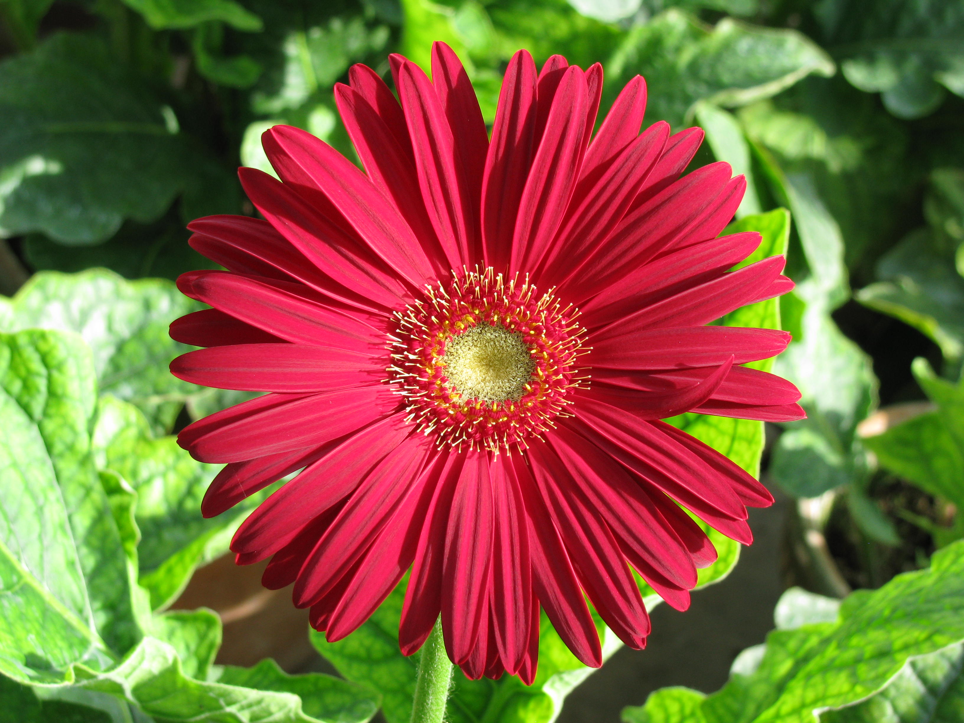 Morfoloģija. Ziedkopas tumši sarkanas, klajas – diametrā 12,0 -13,0 cm. Mēlziedi šauri, to gali noapaļoti, ar zobiņiem. Ziedkopas centrs – zaļpelēks. Ziedkāti gari, 60 – 70 cm, noturīgi. Pirmajā audzēšanas gadā veido 2 – 3 dzinumus.