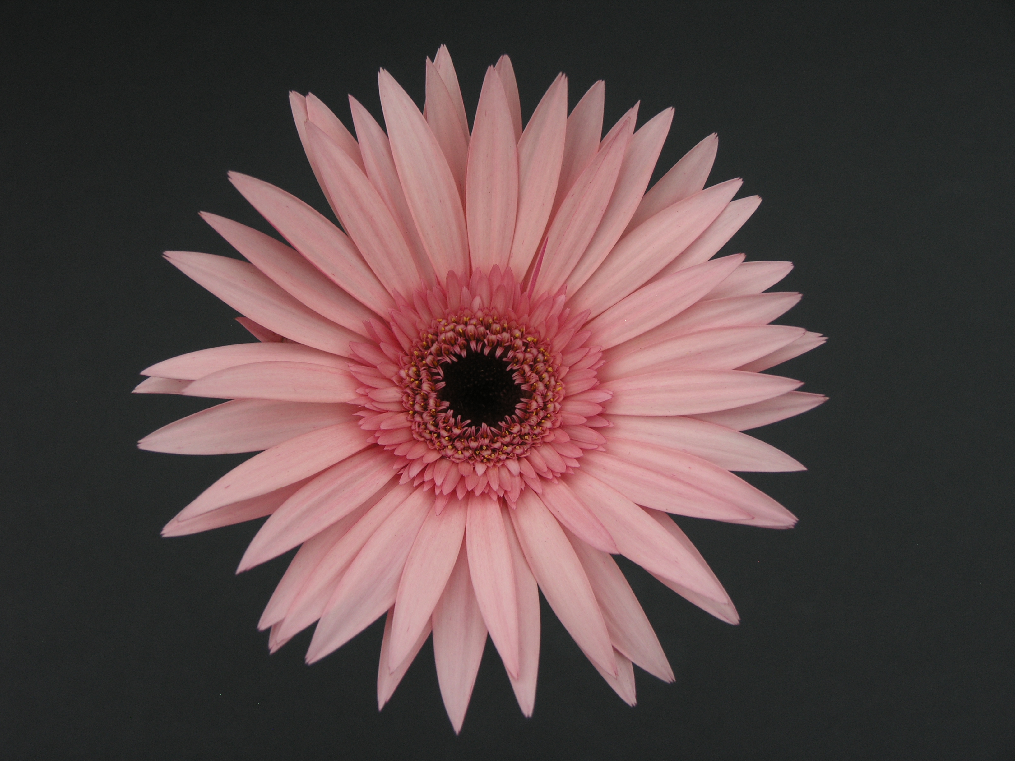 Morfoloģija. Ziedkopas rozā ar tumšu ziedkopas centru 11,0 – 11,5 cm diametrā. Ziedkopas forma puspildīta, piltuvveida. Mēlziedi galos nosmailoti, sakārtoti 2 rindās. Ziedkāti noturīgi, garums 55 – 60 cm. Lapojums kompakts, tumši zaļš. Augs jau pirmajā audzēšanas gadā veido 3 – 4 dzinumus.