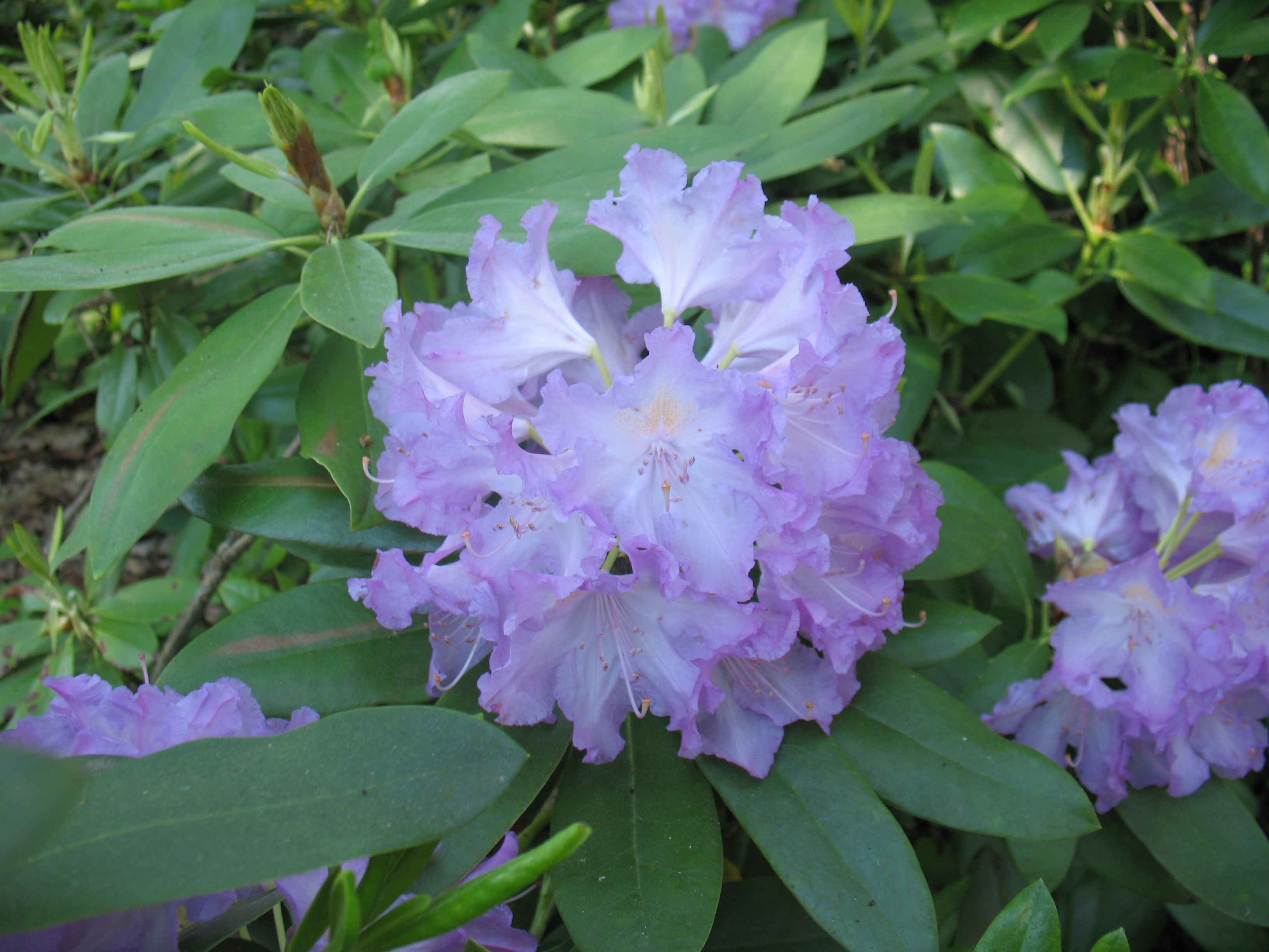 Morfoloģija. Mūžzaļš, kompakts krūms. Augstums 2m platums sasniegts 20 gados. Lapas virspusē gaiši zaļas, apakšpusē pelēkzaļas, eliptiskas, pie pamata noapaļotas, galotnē smailas, līdz 14,5 cm garas un līdz 4 cm platas. Ziedi sakārtoti kompaktās, puslodveida ziedkopās pa 20-26, klaji, plati piltuvveida, 5,5-7,0 cm diametrā, lavandas krāsā ar dzeltenu lāsojumu, krokoti, daivām izteikts dzīslojums. Zied bagātīgi maija beigās, jūnija pirmajā pusē.