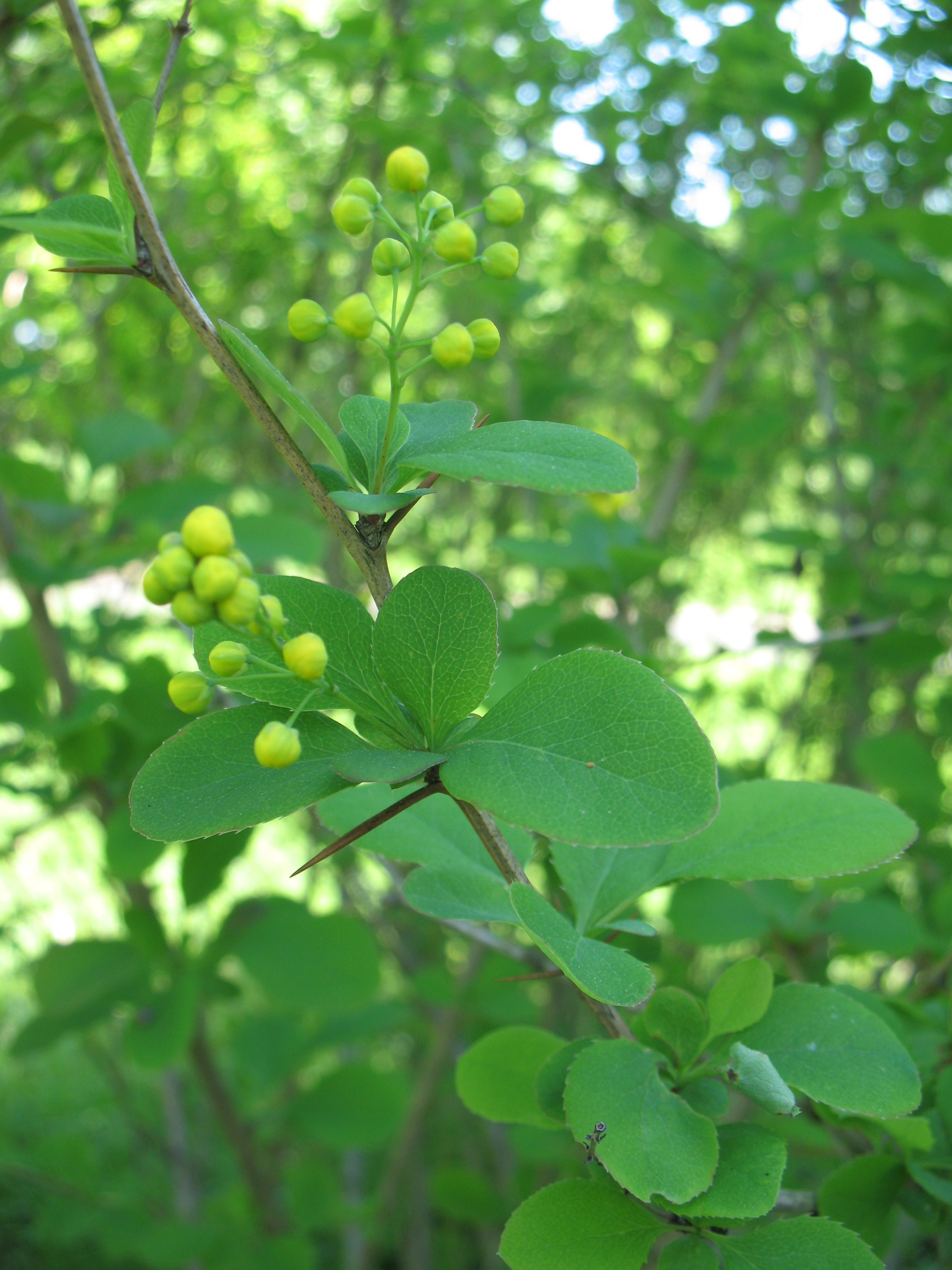 Vasarzaļš, 1,5 m augsts krūms ar stāviem zariem. Jaunie dzinumi purpursarkani, nobriedušie – veltniski vai šķautņaini, tumši purpurbrūni. Pie lapu pamatnes 1-1,5 cm gari, tumši brūni, viendaļīgi vai trīsdaļīgi ērkšķi. Lapas 2-3 cm garas, ieapaļas ar sašaurinātu pamatu, mala dzeloņaini zāģzobaina, virspuse gaiši zaļa, matēta, apakšpuse pelēkzaļa, ar nelielu apsarmi. Zied maija vidū ar dzelteniem ziediem. Ziedi divdzimumu, sakārtoti 3-4 cm garos, stāvos ķekaros pa 10-20. Ogas ēdamas, 6-7 mm garas, koši sarkanas, stingras, iegarenas, bez apsarmes un irbuļa.