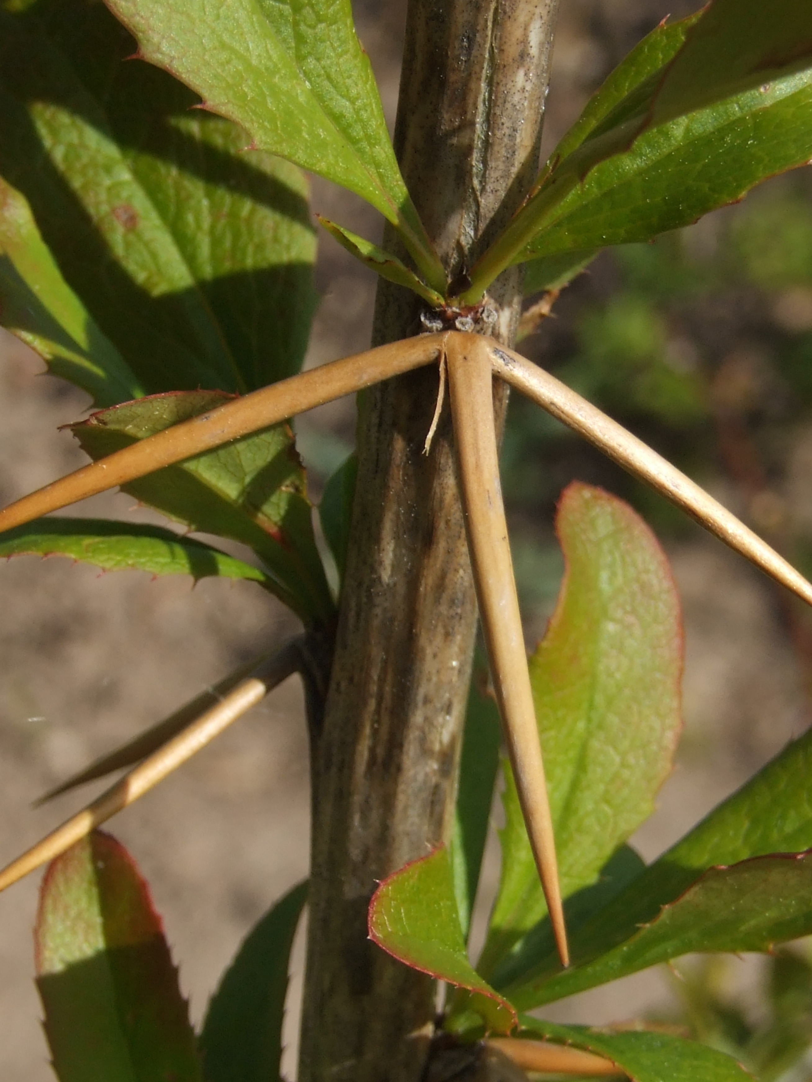 Morfoloģija. Vasarzaļš, līdz 1m augsts, robusts krūms. Dzinumi stingri, rievaini, gaiši dzeltenbrūni, kārpaini. Pie lapu pamatnes viendaļīgi vai trīsdaļīgi, 1-2 cm gari ērkšķi. Lapas 2-3,5cm garas, otrādi olveida līdz iegareni otrādi olveida, mala reti dzeloņaini zāģzobaina vai retāk vesela, virspuse matēta, pelēkzaļa; apakšpuse zilganzaļa, ar apsarmi; dzīslojums tīklveida. Zied maija vidū. Ziedi divdzimumu, kanārijdzelteni, sakārtoti pa vienam vai pa 2-5 čemurveida ķekaros. Ogas purpursarkanas, 10 mm garas, plati elipsoidālas, ar īsu, nedaudz ieliektu irbuli.