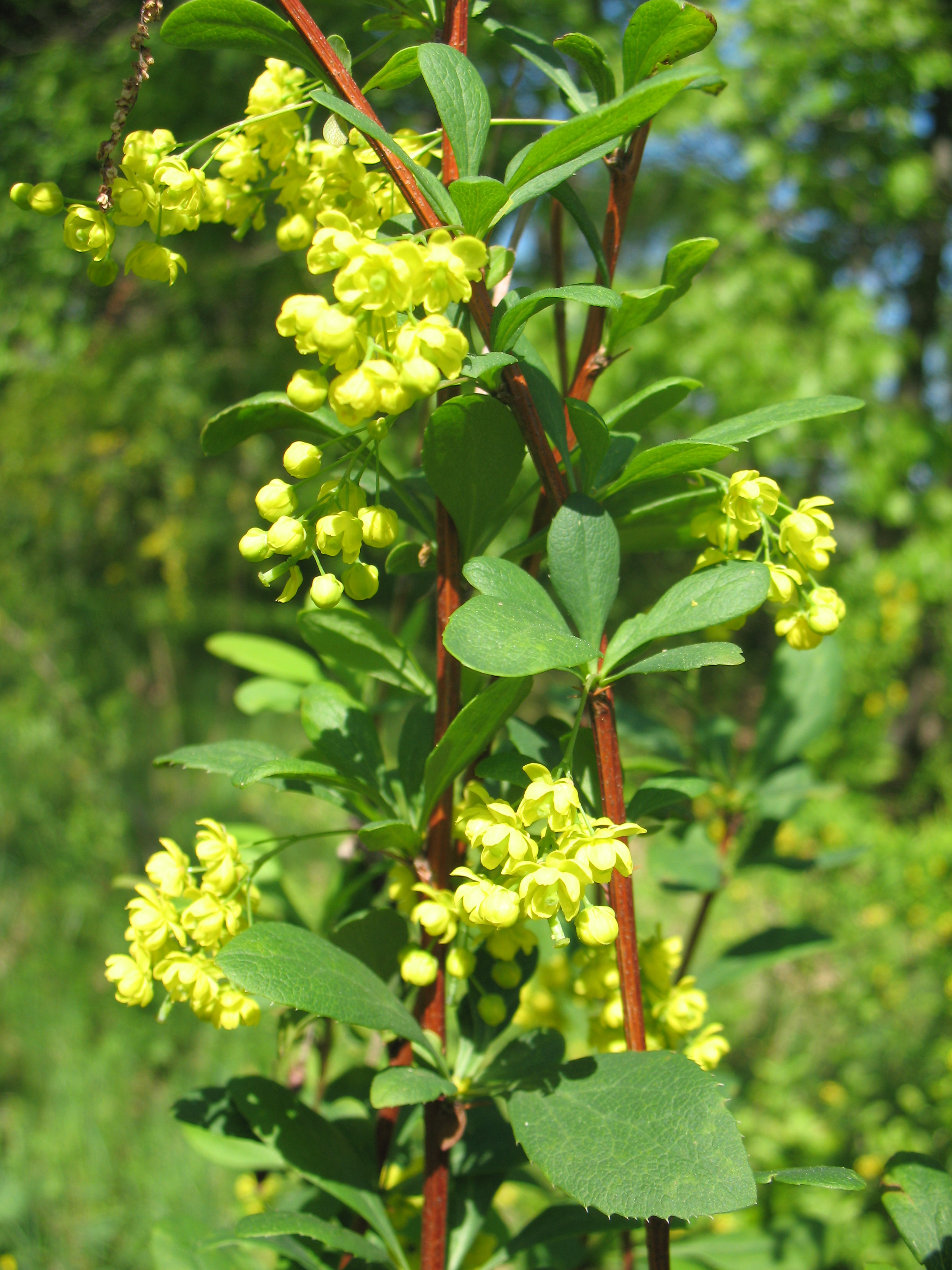 Vasarzaļš, 1,5-1,7 m augsts krūms ar stāviem zariem. Dzinumi šķautņaini, sarkanbrūni, spīdīgi, ar kārpiņām. Pie lapu pamatnes 5-8 mm gari, viendaļīgi ērkšķi. Lapas 2,5-4 cm garas, šauri otrādi olveidīgi lancetiskas, mala vesela, virspuse zāles zaļa, matēta, apakšpuse gaišāka, ar apsarmi. Dzīslojums tīklveida. Zied maija vidū ar dzelteniem ziediem. Ziedi divdzimumu, sakārtoti 3-5 cm garos ķekaros pa 8-15. Ogas ēdamas, 9-10 mm garas, koši sarkanas, stingras, elipsoidālas, bez apsarmes.
