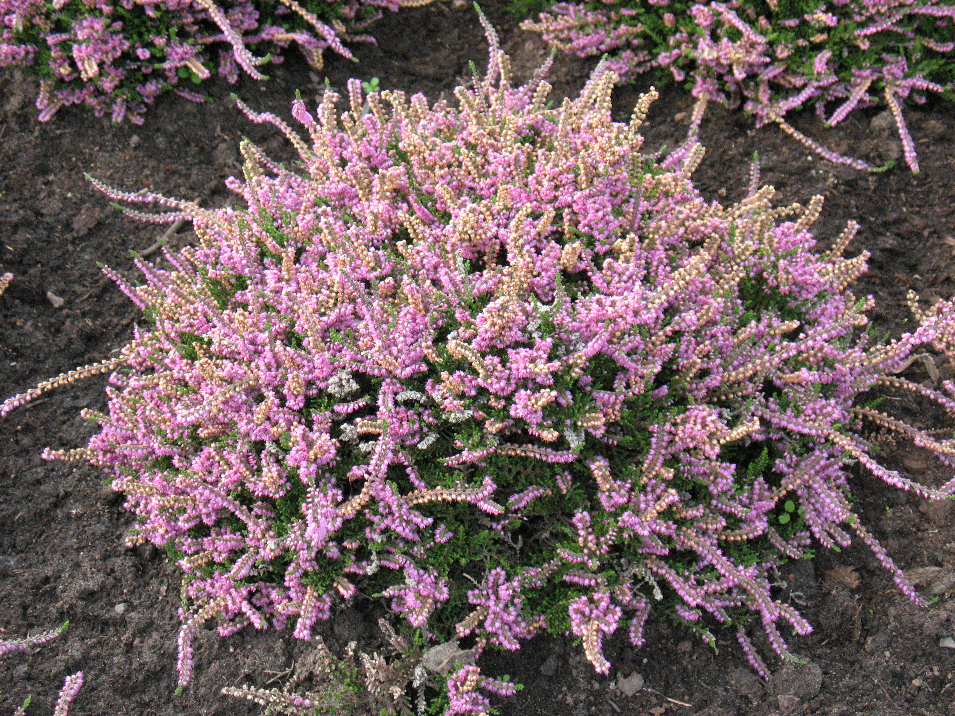 Morfoloģija. Mūžzaļš sīkkrūms zemu, plašu, blīvu zarojumu. Vainaga augstums 20-25cm. Lapas sīkas, izteikti zaļas. Ziedi gaiši violeti, sakārtoti īsos, blīvos vienpusējos galotnes ķekaros. Zied no augusta līdz septembrim.
