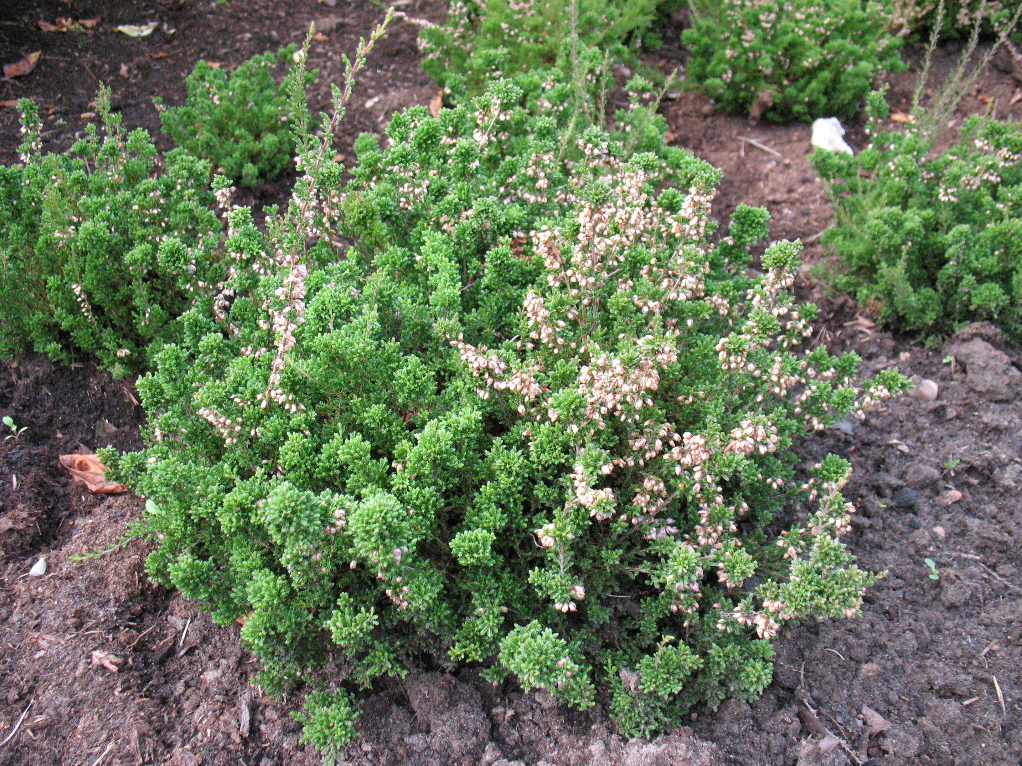 Morfoloģija. Mūžzaļš sīkkrūms ar stāvu, blīvu, smalku, pušķveidīgu zarojumu. Ārēji atgādina skujkoku pundurformu. Vainaga augstums 15-20cm. Lapas sīkas, koši zaļas. Ziedi violeti rozā, vienkārši, sakārtoti īsos galotnes ķekaros. Zied no augusta līdz septembrim.