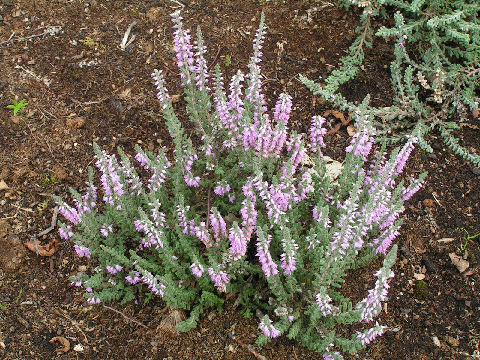 Morfoloģija. Mūžzaļš sīkkrūms ar stāvu, spēcīgu zarojumu. Vainaga augstums 35-40cm. Lapas sīkas, pūkainas, sudrabpelēkas, ziemā krāsojas purpurpelēkas. Ziedi purpurrozā, vienkārši, sakārtoti stāvos, blīvos galotnes ķekaros. Zied no augusta vidus līdz septembra vidum.