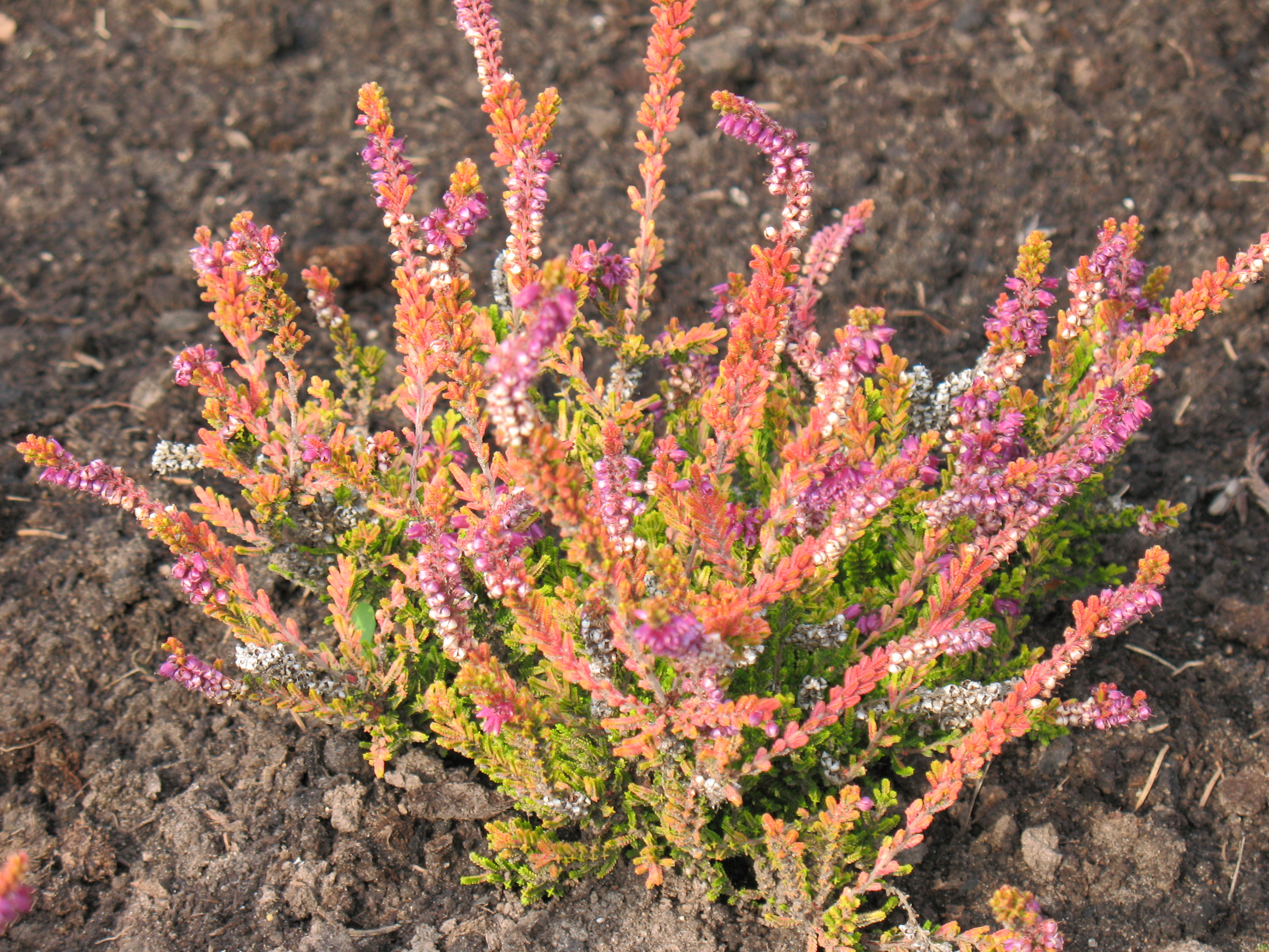 Morfoloģija. Mūžzaļš sīkkrūms ar zemu, plašu, blīvu zarojumu. Vainaga augstums 20cm. Lapas sīkas, krāsojas atkarībā no gadalaika: vasarā zaļas, vēlu rudenī un ziemā šokolādes brūnas, pavasarī tumši zaļas ar krēmkrāsas/sārtiem galiņiem. Ziedi violeti, vienkārši, sakārtoti vienpusējos galotnes ķekaros. Zied no augusta līdz septembrim.