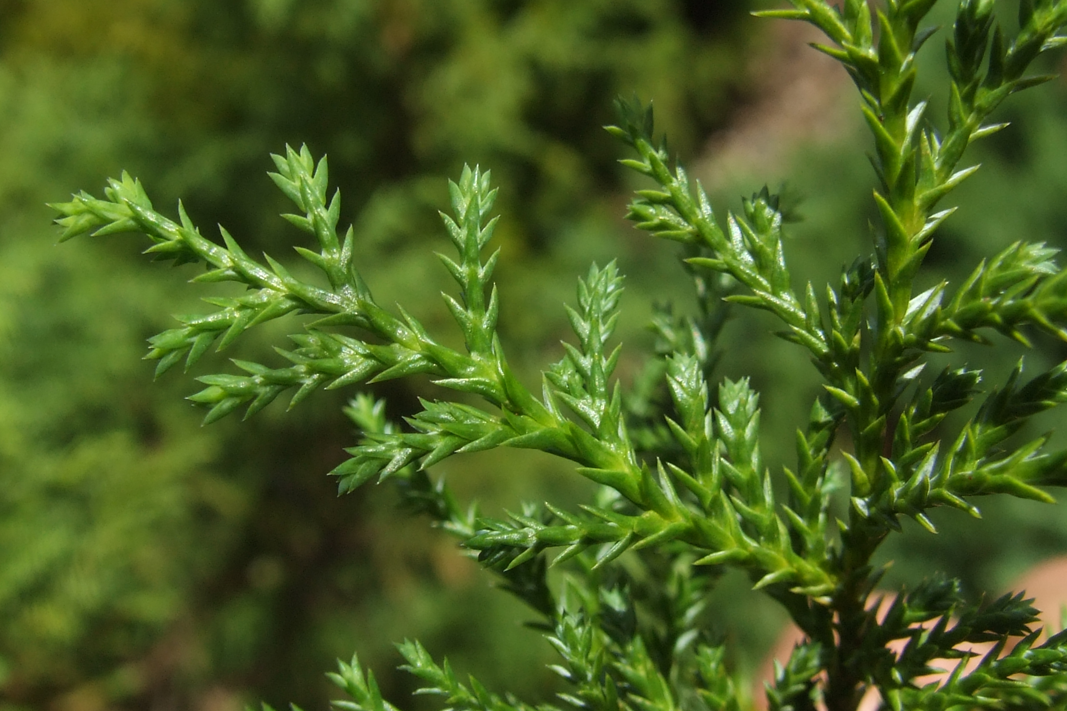 Morfoloģija. Mūžzaļš, lēnaudzīgs koks ar plati konisku vainagu, horizontāli izplestiem, blīvi sakārtotiem zariem un stāvu galotni. 25 gadu vecumā sasniedz 2,5m augstumu un 1,8m platumu. Miza sarkanbrūna, atdalās ar rupjām, vertikālām plēksnēm. Dzinumu gali nokareni. Skujas sulīgi zāles zaļas, ļoti smalkas, smailas, 1,5-2mm garas, novietotas pretēji. Augam ļoti patīkama, spēcīga sveķu smarža.