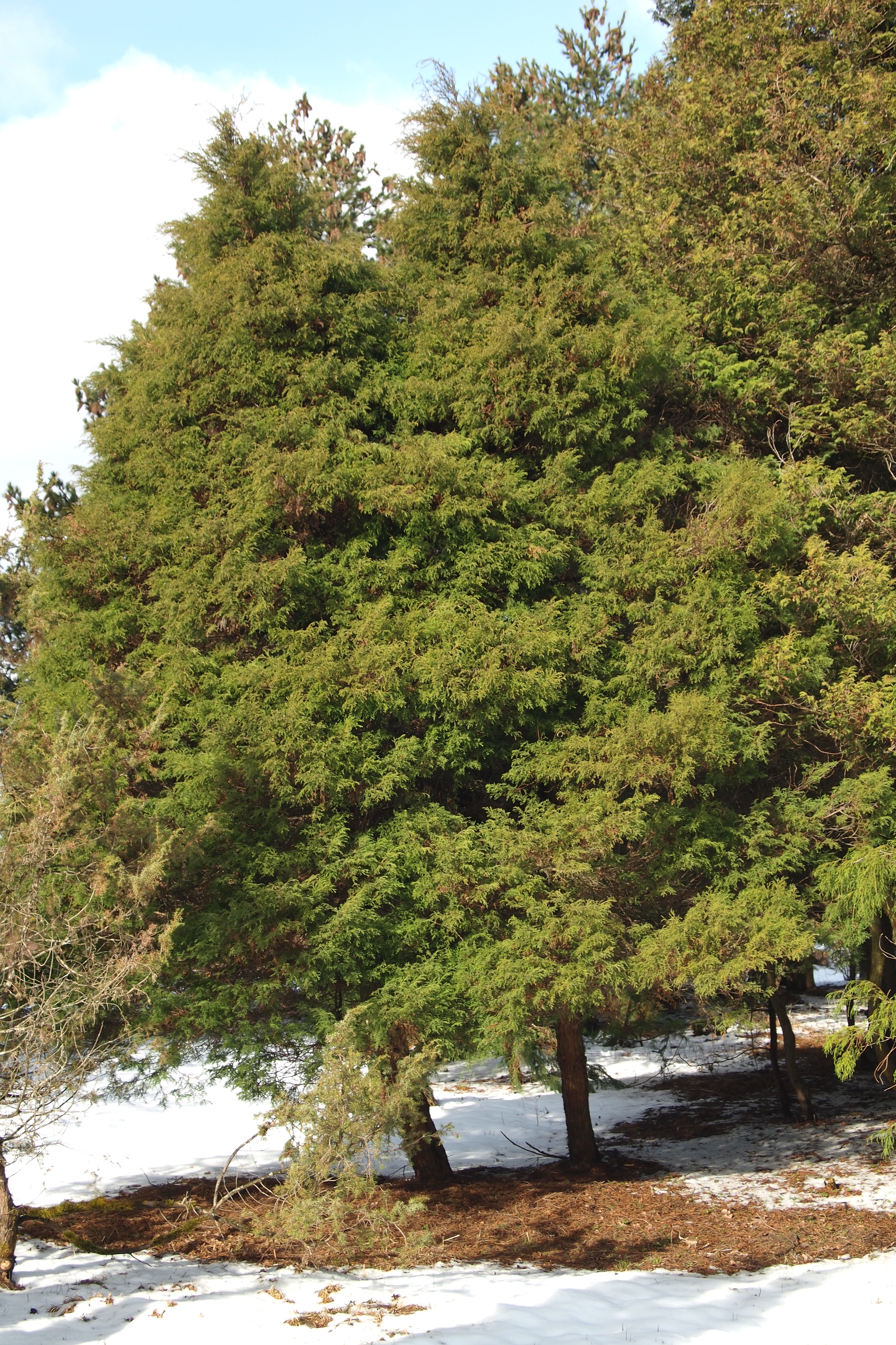 Morfoloģija. Mūžzaļš, lēnaudzīgs koks ar plati konisku vainagu, horizontāli izplestiem, blīvi sakārtotiem zariem un stāvu galotni. Miza sarkanbrūna, atdalās ar rupjām, vertikālām plēksnēm. Dzinumu gali pušķveidīgi zaroti, nedaudz saritināti. Skujas sulīgi zāles līdz zilganzaļas, ļoti smalkas, gan zvīņveida, gan adatveida, smailas, novietotas pretēji. Augam ļoti patīkama, spēcīga sveķu smarža.