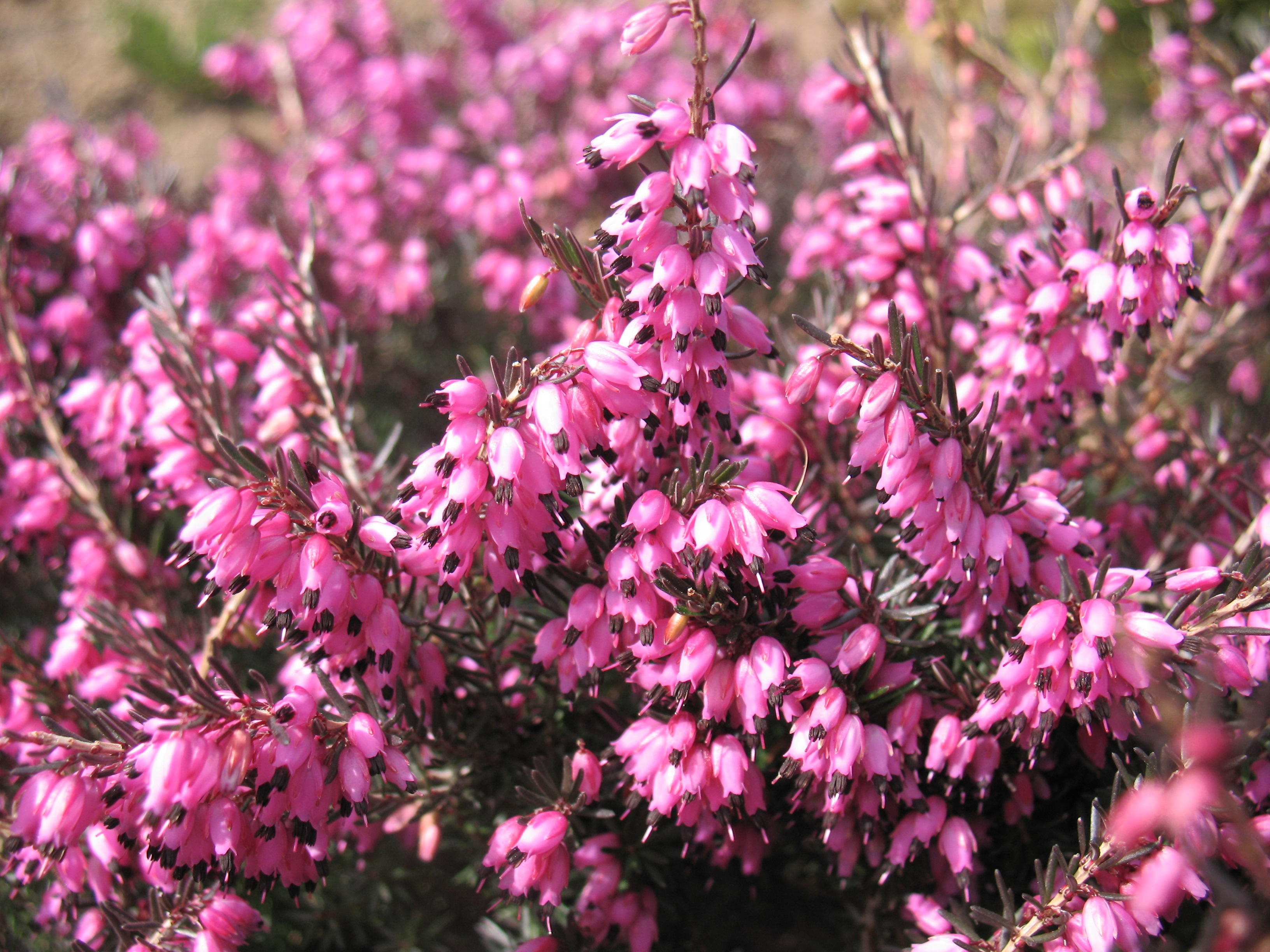 Morfoloģija. Mūžzaļš sīkkrūms ar plašu vainagu un smalku, blīvu zarojumu. Vainaga augstums 25-30cm. Lapas sīkas, smailas, atstāvošas, tumši zaļas ar bronzas nokrāsu. Ziedi tumši purpursarkani. Zied no aprīļa līdz maijam.