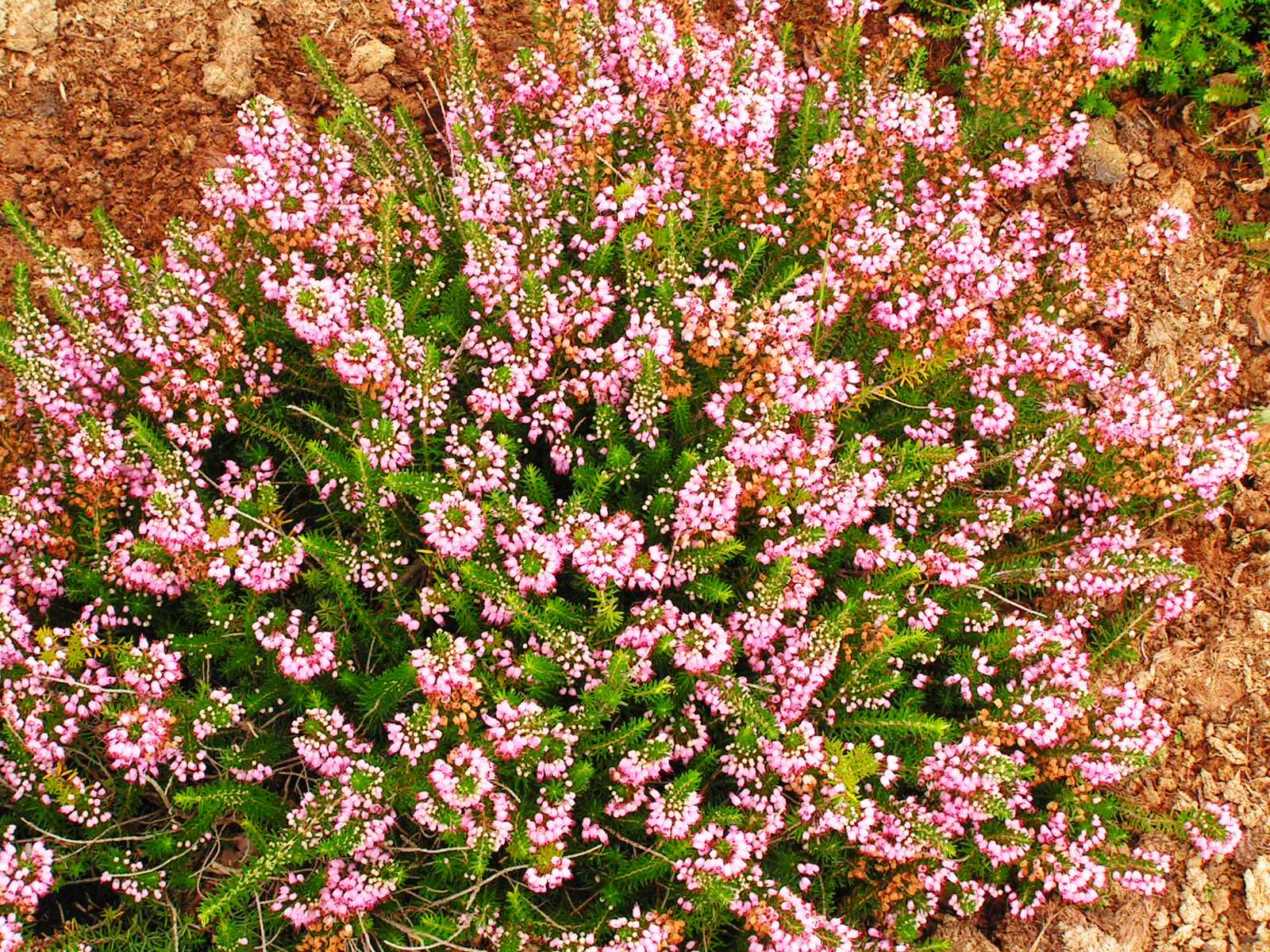 Morfoloģija. Mūžzaļš sīkkrūms ar klājenisku, plašu vainagu un smalku, blīvu zarojumu. Vainaga augstums 20-25cm, platums 25-30cm. Lapas sīkas, smailas, atstāvošas, tumši zaļas. Ziedi tumši rozā, sakārtoti, biezos cilindriskos galotnes ķekaros. Zied no jūlija līdz septembrim.