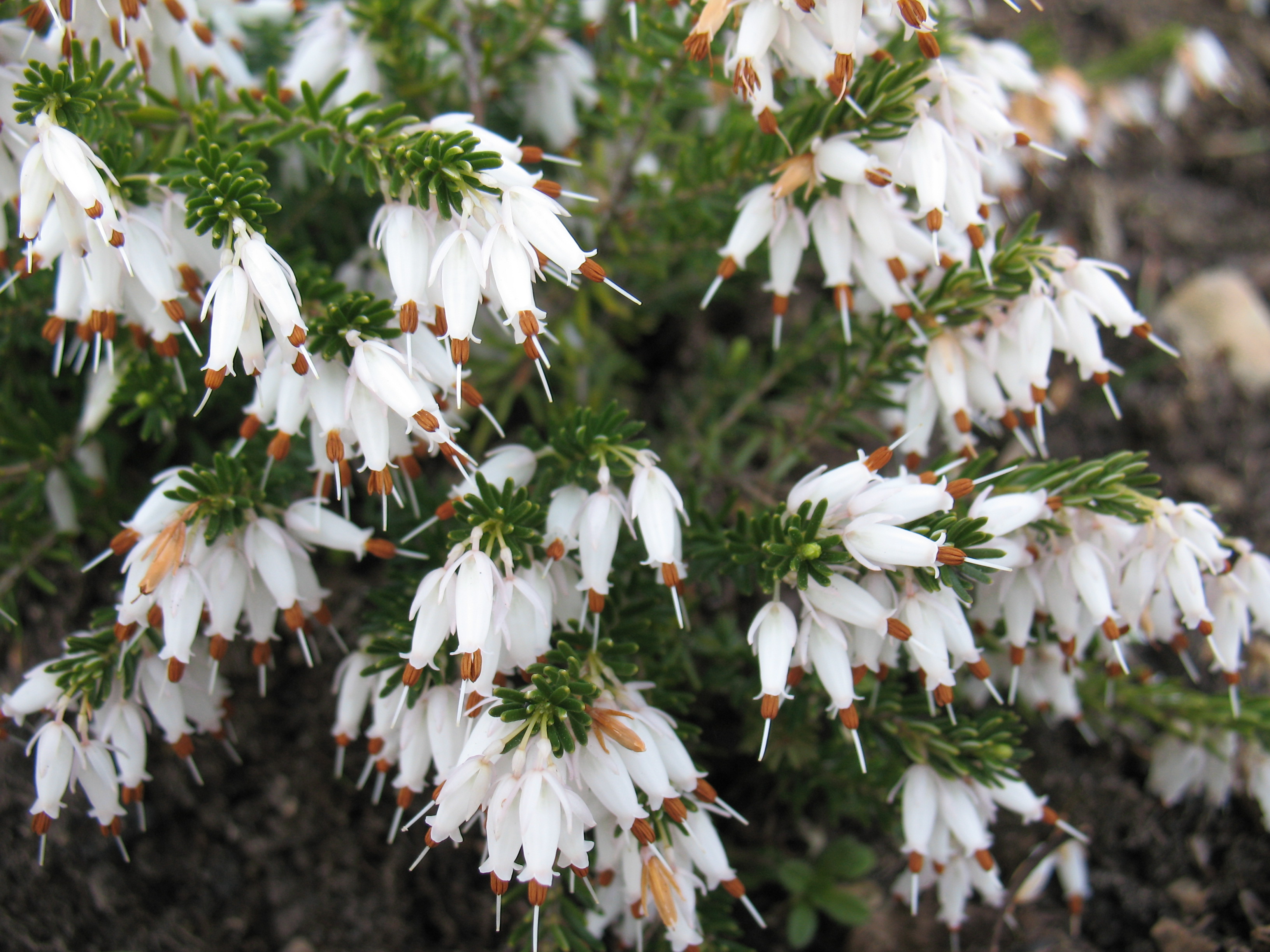 Morfoloģija. Mūžzaļš sīkkrūms ar klājenisku, plašu vainagu un smalku, blīvu zarojumu. Vainaga augstums 10-15cm, platums 25-30cm. Lapas sīkas, smailas, atstāvošas, koši zaļas. Ziedi balti, sakārtoti stāvos galotnes ķekaros. Zied no marta beigām līdz aprīļa beigām.