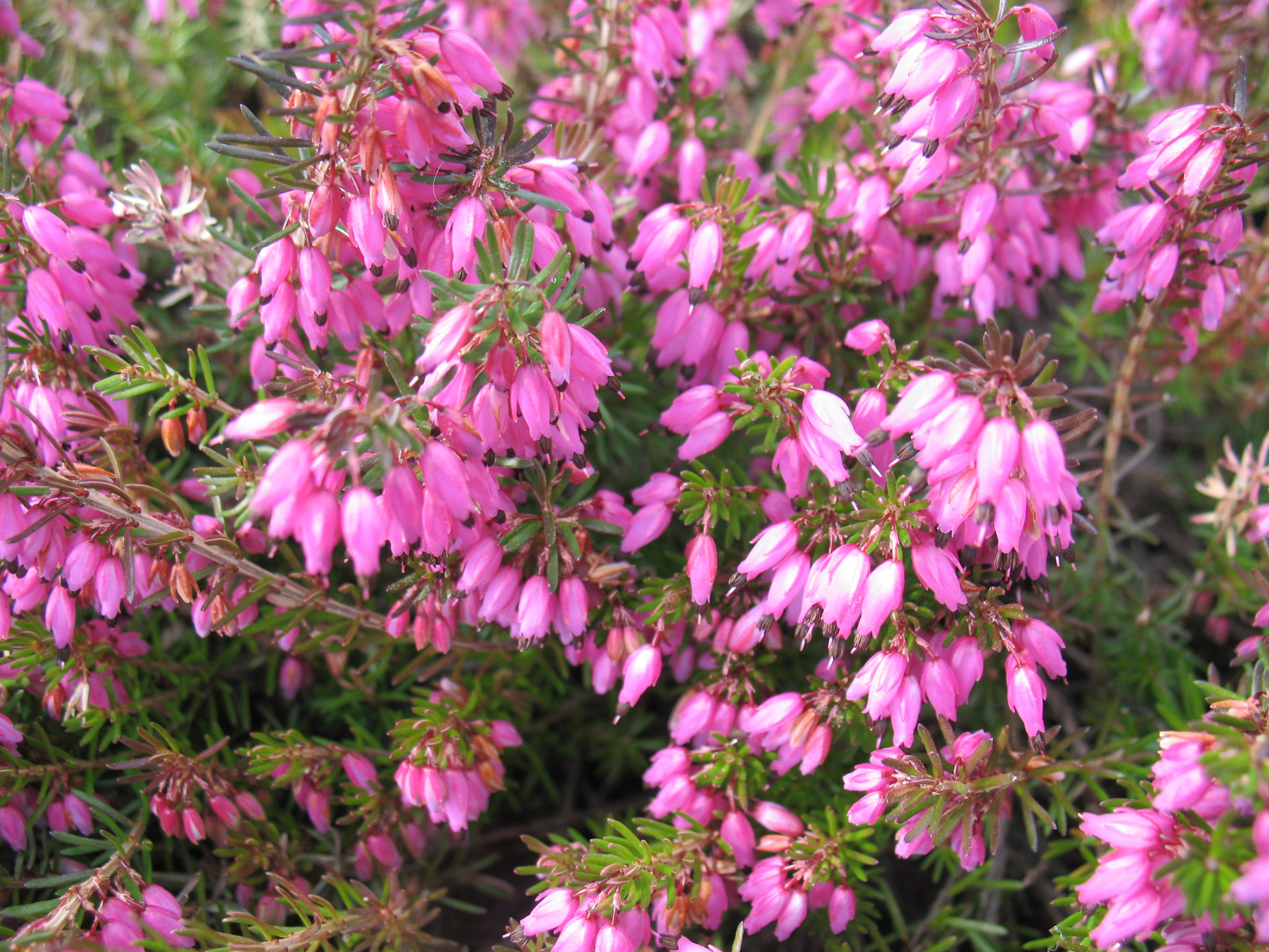 Morfoloģija. Mūžzaļš sīkkrūms ar klājenisku, plašu vainagu un smalku, blīvu zarojumu. Vainaga augstums 15-20cm, platums 30-35cm. Lapas sīkas, smailas, atstāvošas, piesātināti tumši zaļas. Ziedi sārti violeti līdz tumši sarkani, blīvi sakārtoti vienpusējos galotnes ķekaros. Zied no marta beigām līdz maija vidum.