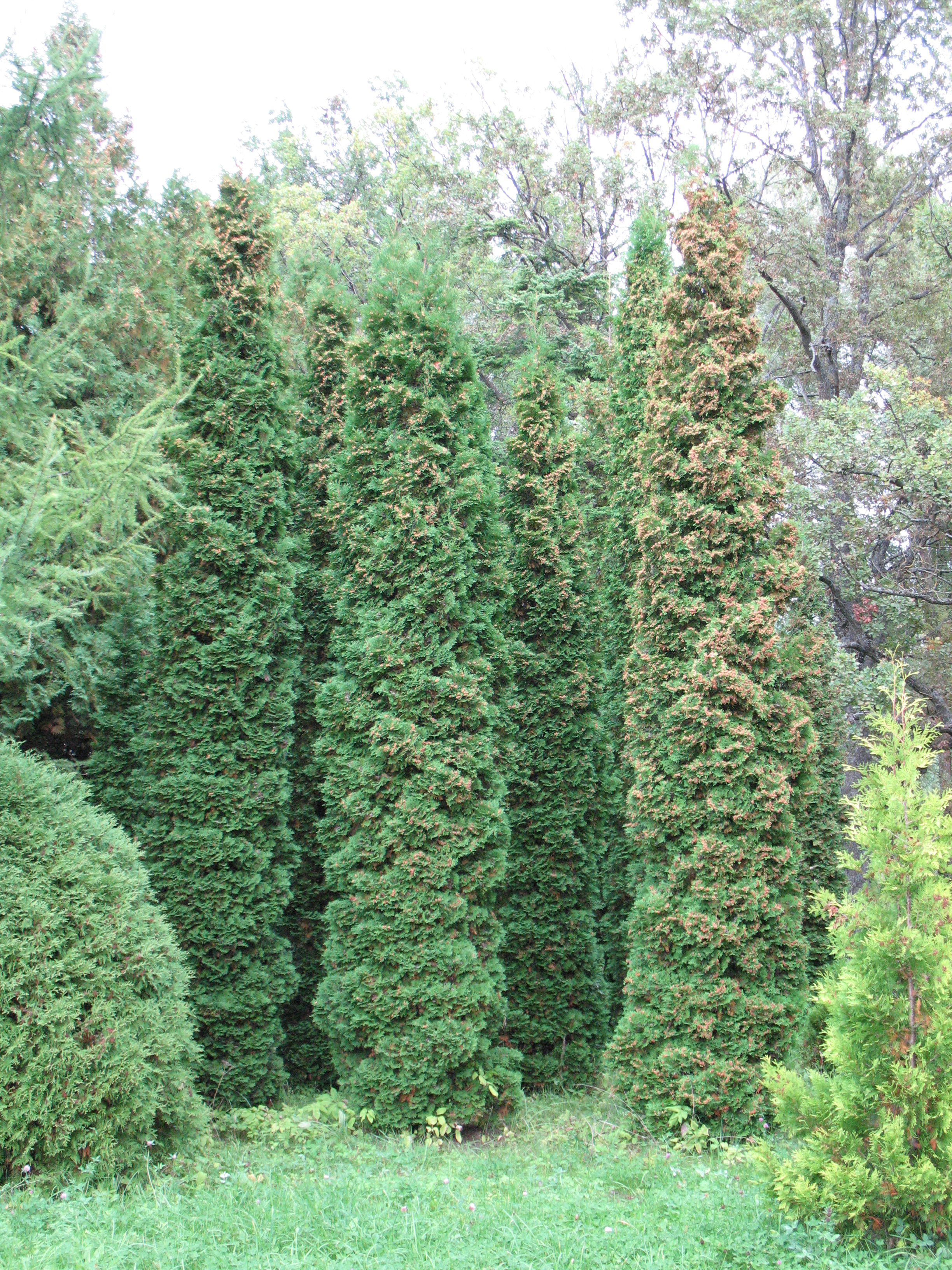 Morfoloģija. Mūžzaļš, lēnaudzīgs koks ar šauri piramidālu vainaga formu. Koka augstums 3-5m, platums 0,8-1,0m. Desmit gados sasniedz 2-3m garumu un 0,8m platumu. Skeleta zari blīvi izvietoti, uz augšu vērsti, galos līdz 2mm plati. Skujas sulīgi zaļā krāsā, kas savu krāsojumu saglabā arī ziemā.