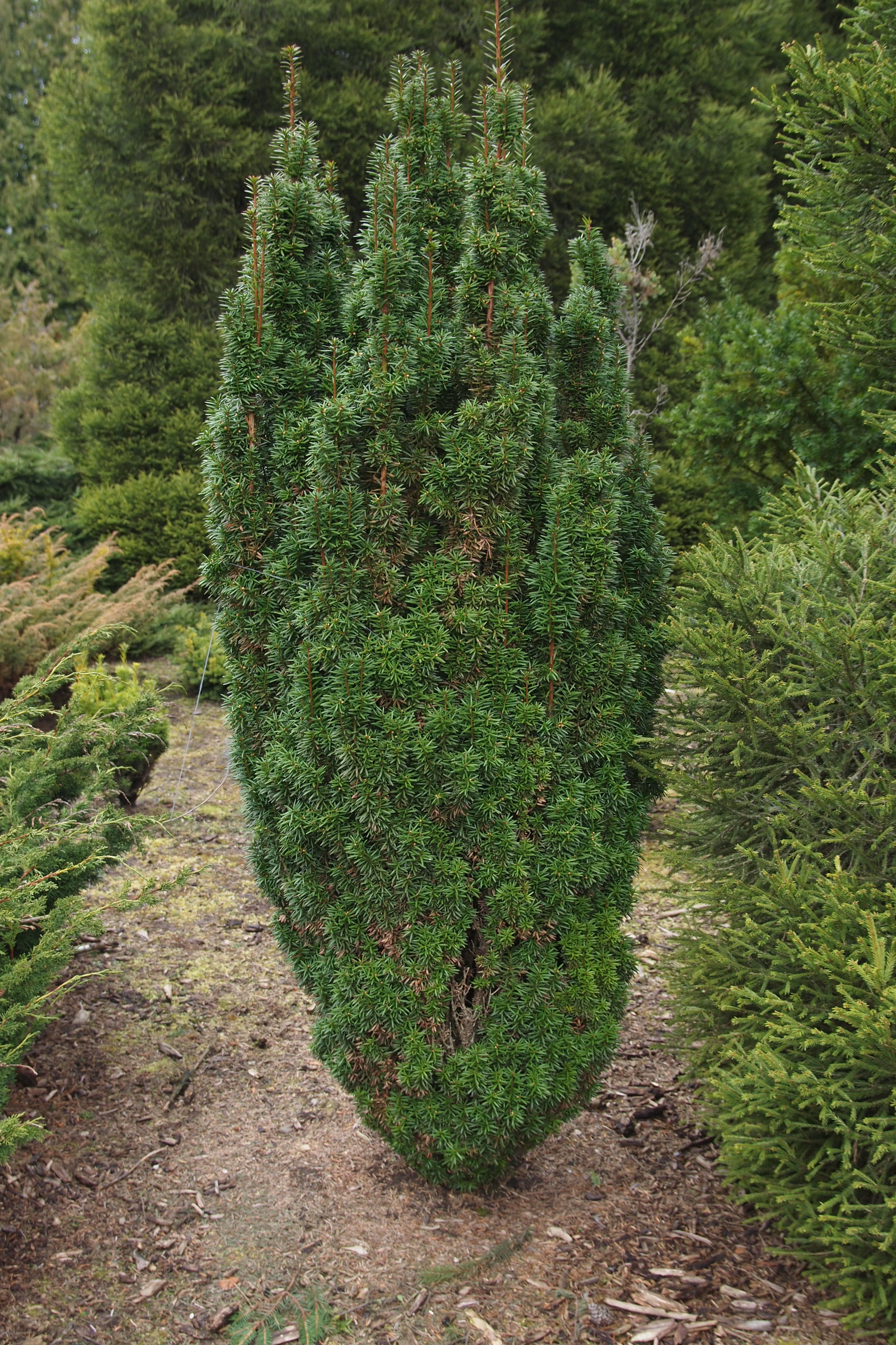Nozīme. Apstādījumos ātrā laikā var iegūt spēcīgi augošus, efektīvus stādus, bet zaru nenoturības dēļ šķirne ātri zaudē dekorativitāti. (10-12 gados) zarus iekšpusē iespējams sastiprināt ar dažādiem paņēmieniem. Koksne un skujas ir indīgas.