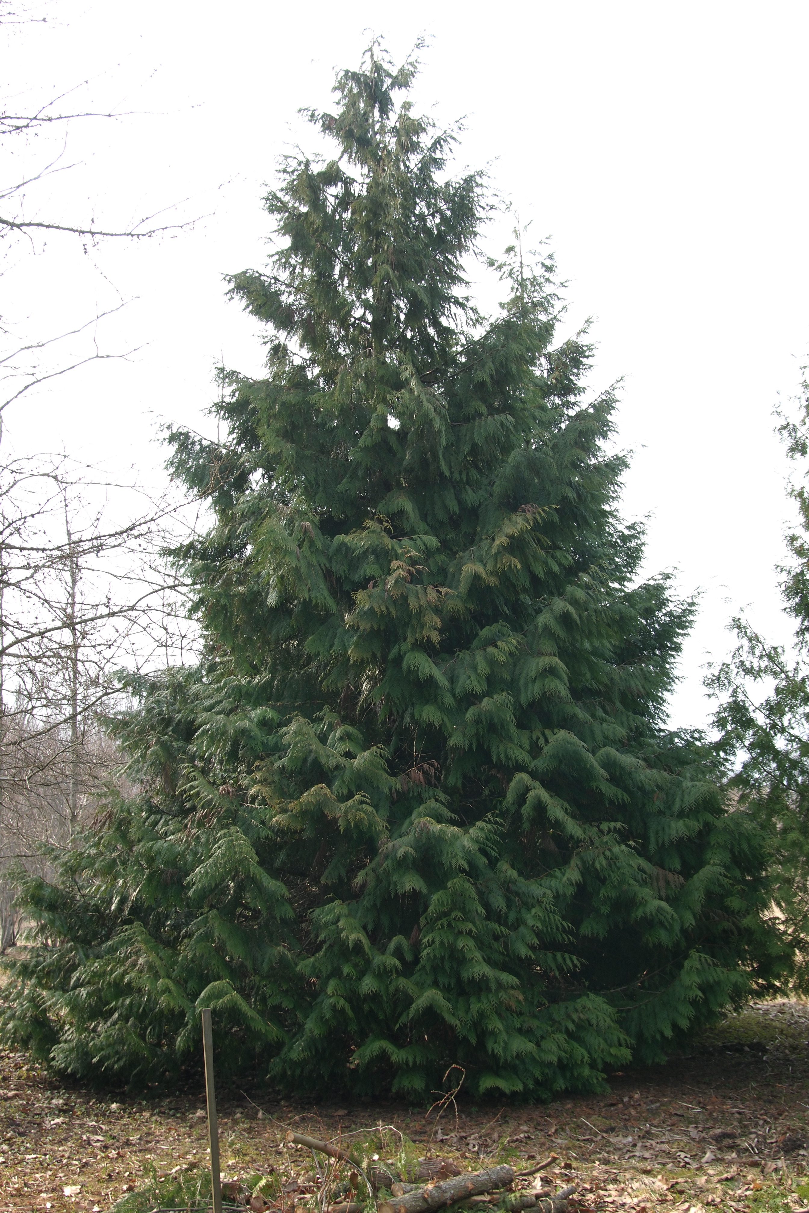 Morfoloģija. Mūžzaļš, pirmā lieluma koks ar piramidālu vainaga formu, kalnos, uz areāla robežas, arī krūms. Savvaļā koka augstums parasti sasniedz 55m, ne reti arī virs 60m, vainaga platums līdz 15m. Stumbra diametrs 1,2-2,5m. Ļoti ilgmūžīgs koks, sasniedz 500-800 gadu vecumu. Miza kanēļbrūna jauniem augiem un pelēkbrūna novecojot, stiegraina, 10-25mm bieza. Mehāniski ļoti izturīga koksne. Skeleta zari spēcīgi, izplesti, lokveida. Sānu zari nokareni. Skujas zvīņveida, 3-6mm garas, zaļas, dzinumu augšējā daļā spīdīgas, bet apakšējā daļā ar baltiem lāsumiem. Čiekuri slaidi eliptiski, 10-14mm gari, brūni.