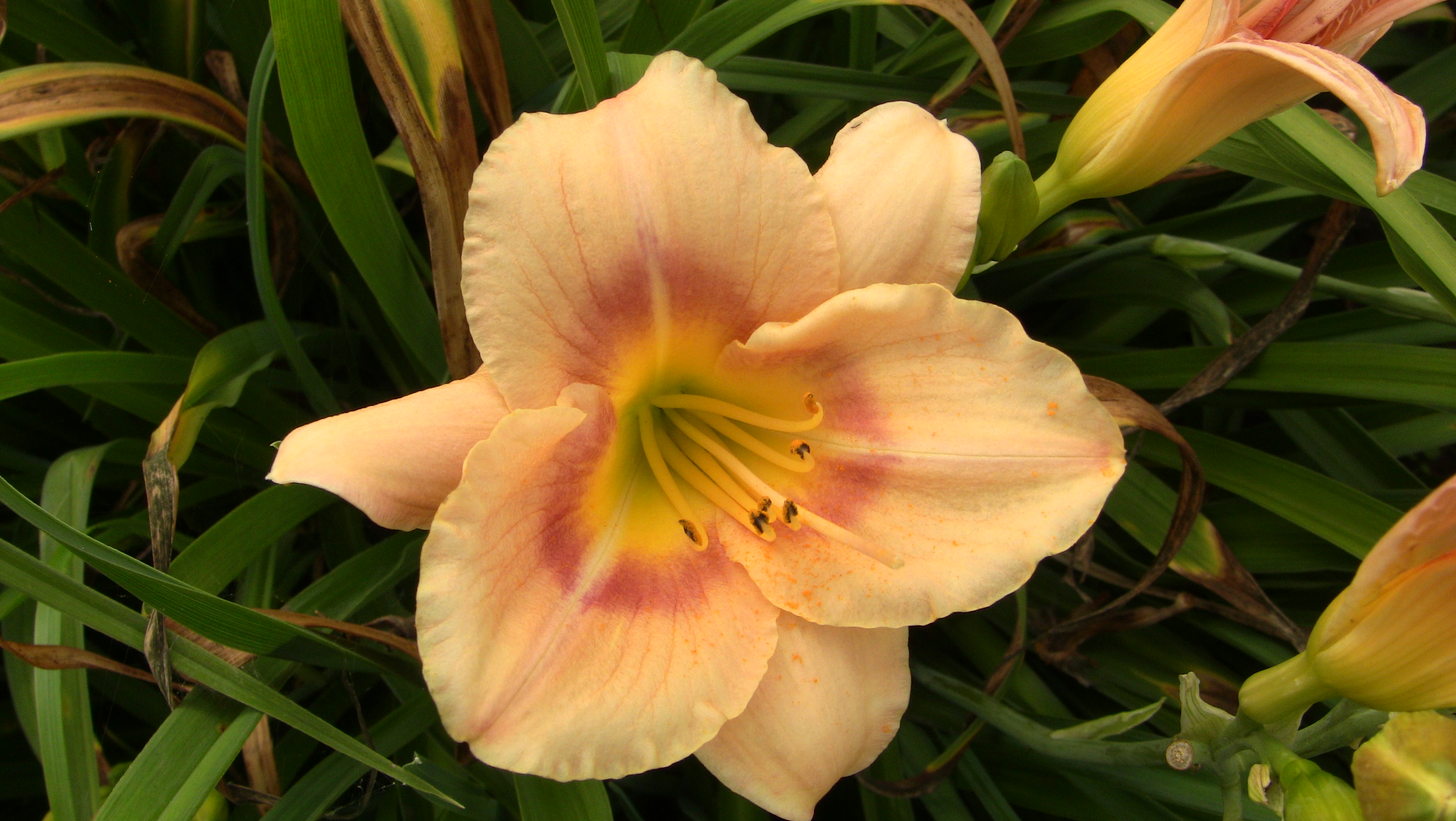 Morfoloģija. Dienziedes diploīdā šķirne ’Buffys Doll’ ir zema auguma daudzgadīgs, ziemcietīgs, dienziežu dzimtas (Hemerocallidaceae) vasarzaļš lakstaugs. Cera rozetes lapas zālveida, nedaudz noliektas. Tās ir lineāras, samērā garas, zaļas. Ziedi piltuvveida, gaiši krēma rozā krāsā. Vainaglapas apaļas; kauslapas šauras, atliektas. Uz vainaglapām sarkanīgs zīmējums. Apziednis vienkāršs - 3 kauslapas un 3 vainaglapas. Ziednesis 30 cm garš, bez lapām, galotnē zarots. Zied jūlijā.