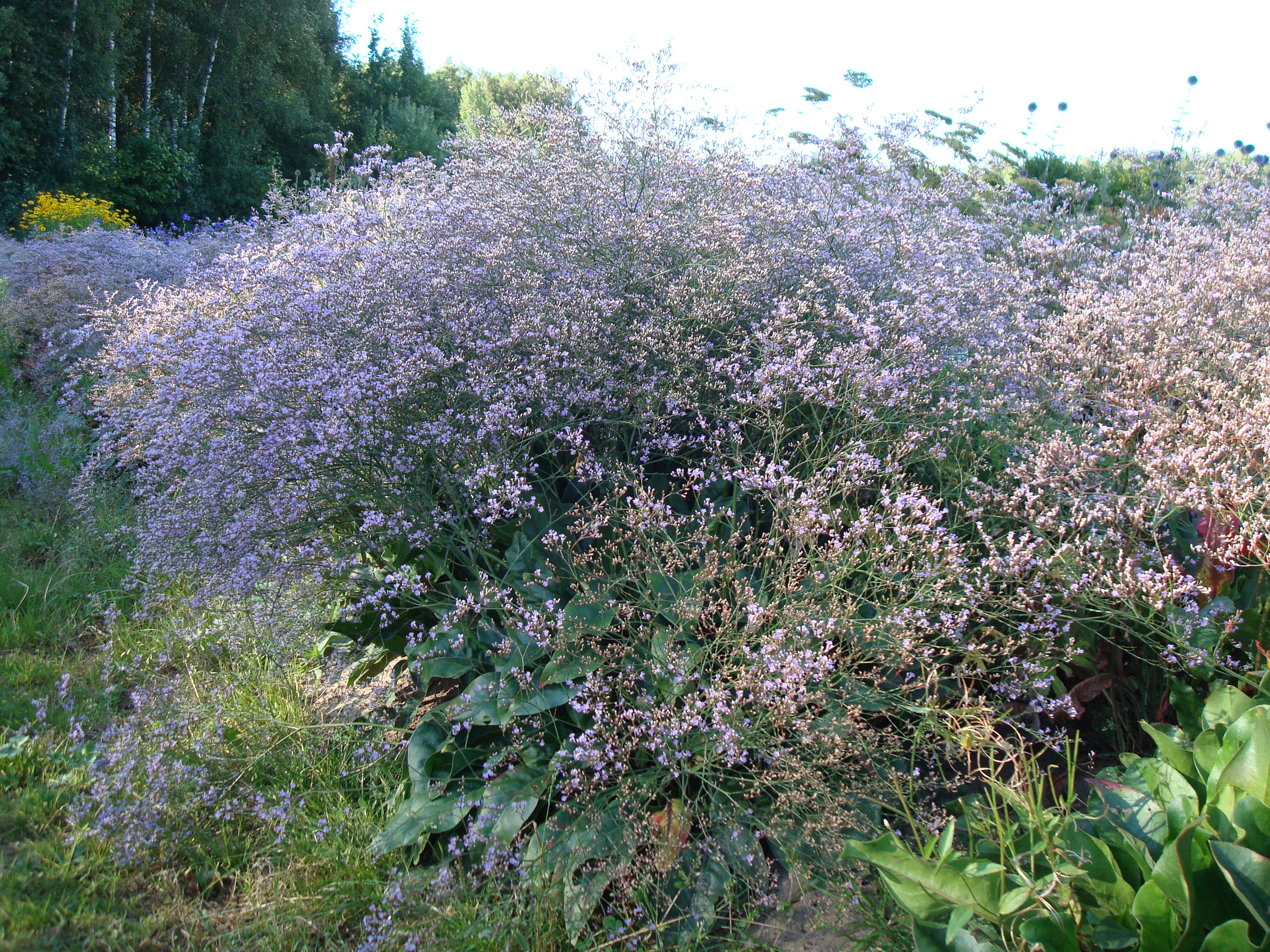 Morfoloģija. Platlapu limonija ir daudzgadīgs, ziemcietīgs 50 – 60 cm augsts svineņu dzimtas (Plumbaginaceae) lakstaugs. Lapas garas, ādainas, biezas, eliptiskas, sakārtotas rozetēs. Kupli sazarotie stublāji nosēti ar sīkiem, gaiši ziliem ziediņiem un ziedēšanas laikā atgādina gaisīgu mākoni. Ziedu vieglā smarža pievilina tauriņus un kukaiņus. Zied no jūlija līdz septembrim.