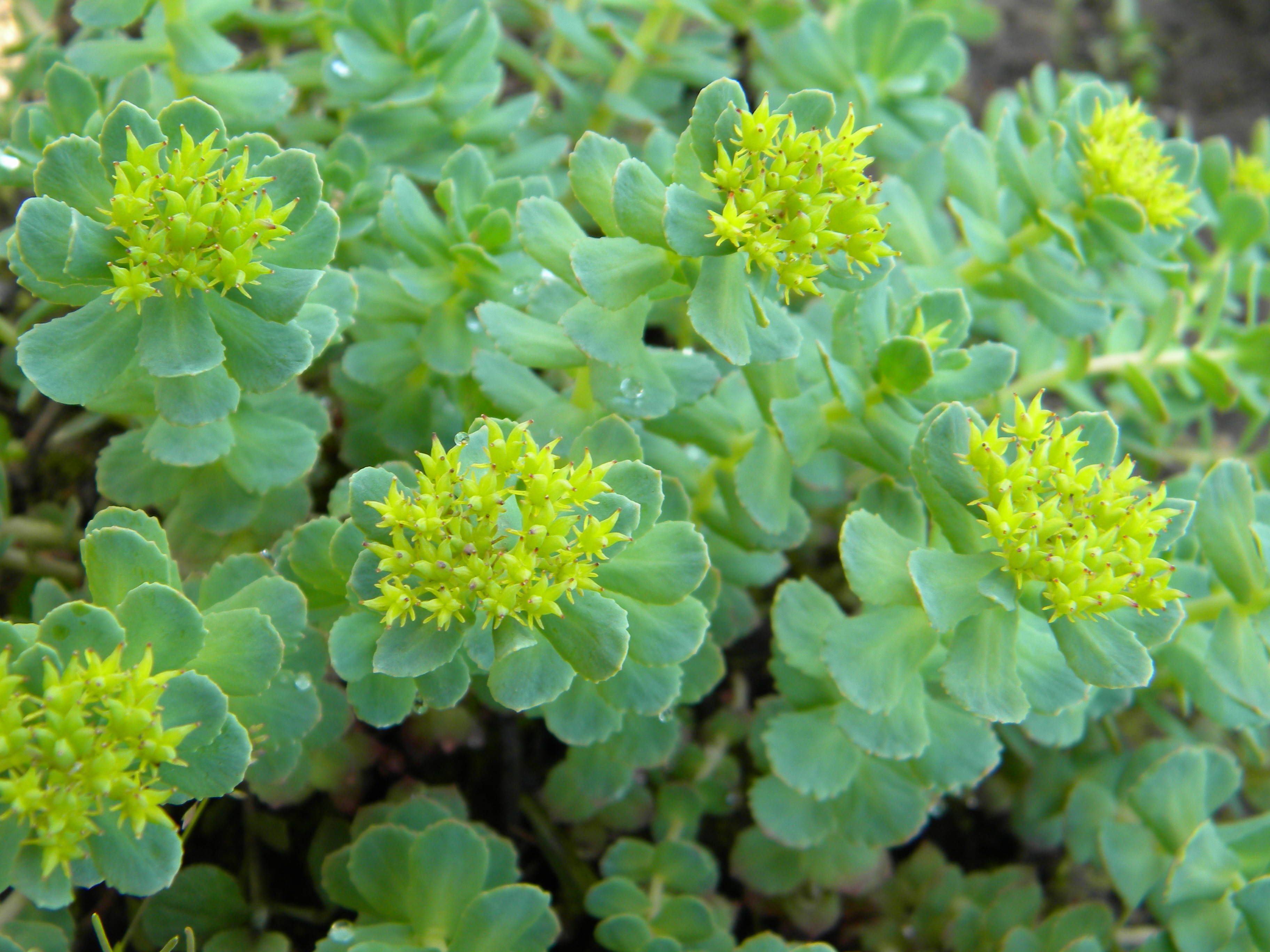 Morfoloģija. Rožainā rodiola ir daudzgadīgs, ziemcietīgs līdz 50 cm augsts, medicīnā populārs biezlapju dzimtas (Crassulaceae) lakstaugs ar brūnganu vai pelēkbrūnu sakneni un sīkām saknēm. Stublāji stāvi, sulīgi, gaļīgi, daudz. Lapas sēdošas, olveida, eliptiskas, pāra, nereti augšējās lielākas par apakšējām. Ziedi dzelteni, daudz. Ziedkopā izkārtoti vairogā. Zied jūnijā, jūlijā.