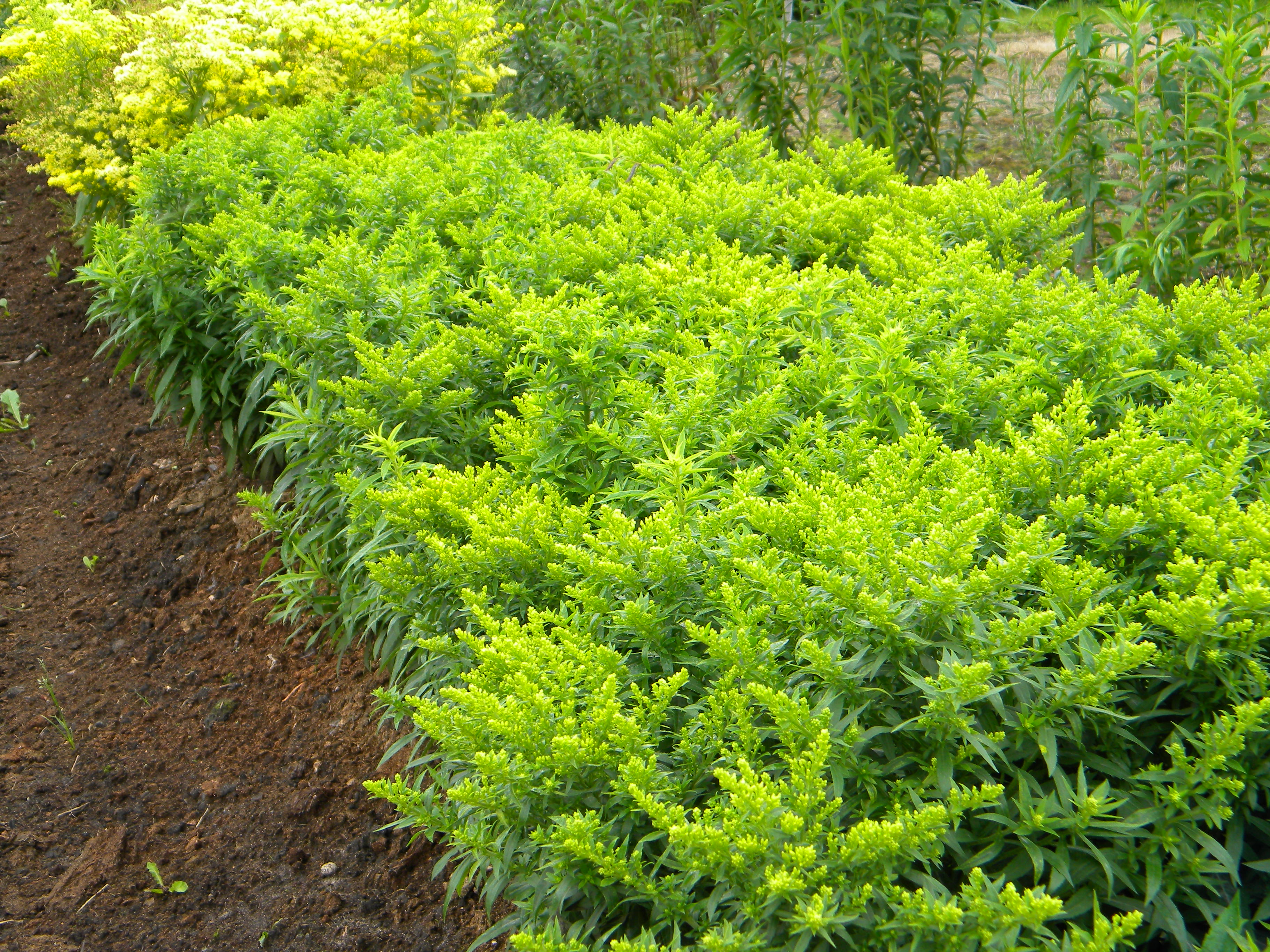 Morfoloģija. Zeltgalvītes hibrīdā šķirne ‘Golden Mosa’ ir daudzgadīgs, ziemcietīgs 60 cm augsts asteru dzimtas (Asteraceae) lakstaugs. Stublāji drukni, stāvi, spēcīgi, ļoti aplapoti. Lapas tumši zaļas, spīdīgas, vienkāršas, veselas, nosmaiļotas, ovāli lancetiskas, ar retiem zobiņiem. Ziedi koši dzelteni, mazos kurvīšos, sakārtoti stublāju galos plašās, garās skarās (30 cm). Zied augustā, septembrī.