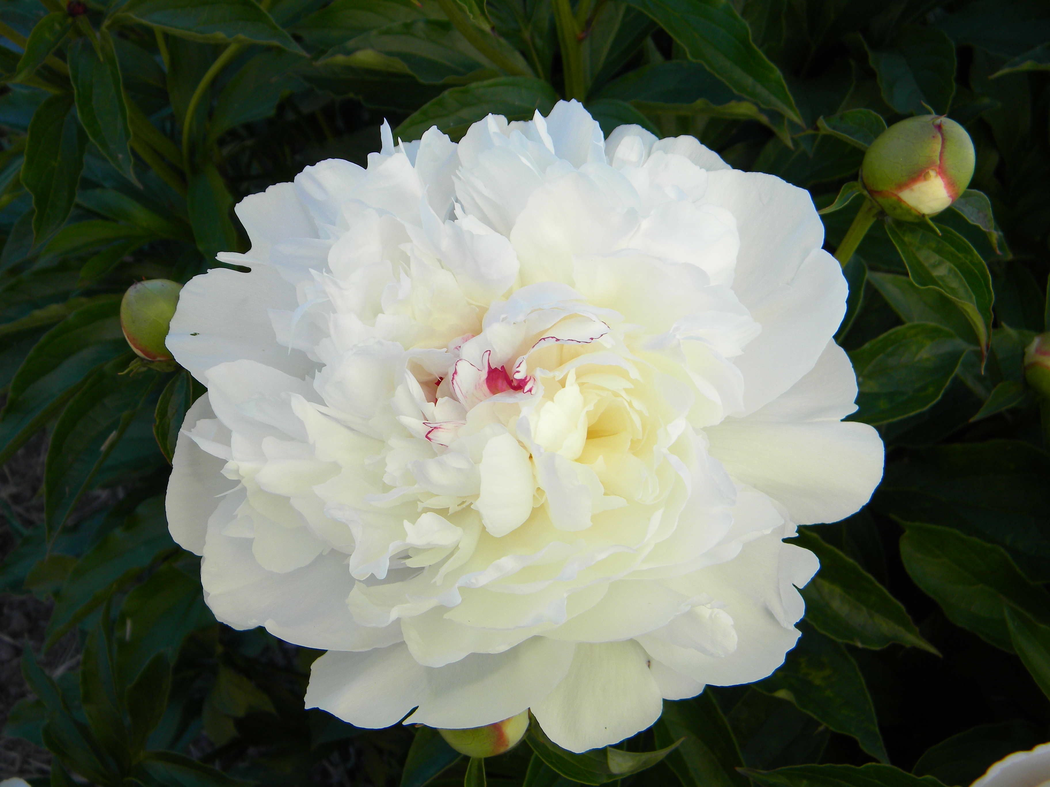 Cers nedaudz izvērsts, spēcīgs. Lapas tumši zaļas, spīdīgas. Ziedi lieli, ļoti pildīti, koši balti ar patīkamu, maigu smaržu. Dažkārt uz vidējām vainaglapām nevienādi karmīnsarkani plankumi. Zied bagātīgi no jūnija mēneša otrās dekādes vidēji 13 - 17 dienas. Ziedēšanas ilgumu iespaido meteoroloģiskie apstākļi. Lai gan šī šķirne ir ļoti sena, tā ir saglabājusi visas savas sākotnējās īpašības un nav izvirtusi.