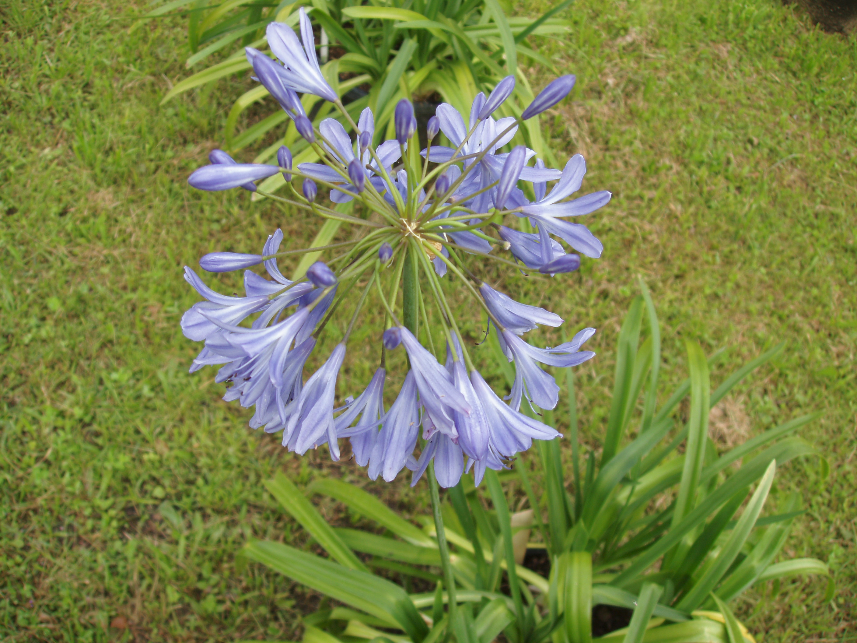 Morfoloģija. Mūžzaļš, daudzgadīgs lakstaugs ar gaiši zaļām, siksnveida, 30-60 cm garām un 2-3 cm platām, ādainām lapām. Lapas viegli nolīkušas. Ar resniem sakneņiem. Augstu virs lapām, pat 1 metra augstumā paceļas ziedkāts ar saliktu zieda čemuru. Ziedi garos kātos, zili-lillā. Zied vasarā, rudenī.