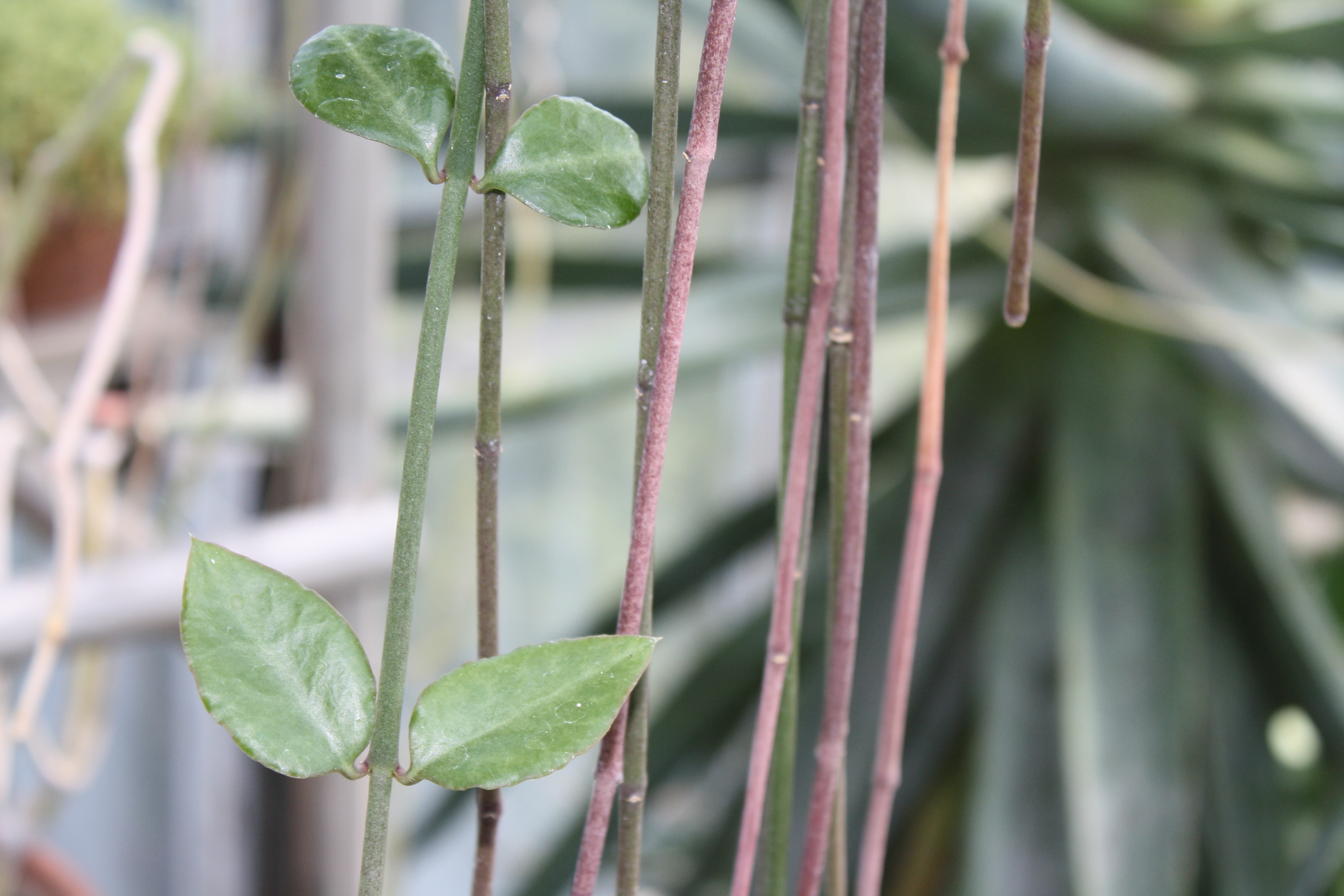 Morfoloģija. Mūžzaļš, daudzgadīgs 2-4 m garš stumbra sukulents ar gaiši zilganzaļiem dzinumiem, kuri var būt kāpelējoši, vijoši un nokareni. Stumbri 4-6 mm resni, starp lapu mezgliem 6-20 cm attālums. Lapas sirdsveida vai olveida 4-5 cm garumā un 3-4 cm platumā, biezas, apakšā izdalās vidusdzīsla. Bārkšveida sakne. Telpās zied ar izpletņa formas ziediem, kuri virspusē ir bālgani ar gaiši zaļiem punktiem, bet apakšā daudz sīku, īsu bārkstiņu.