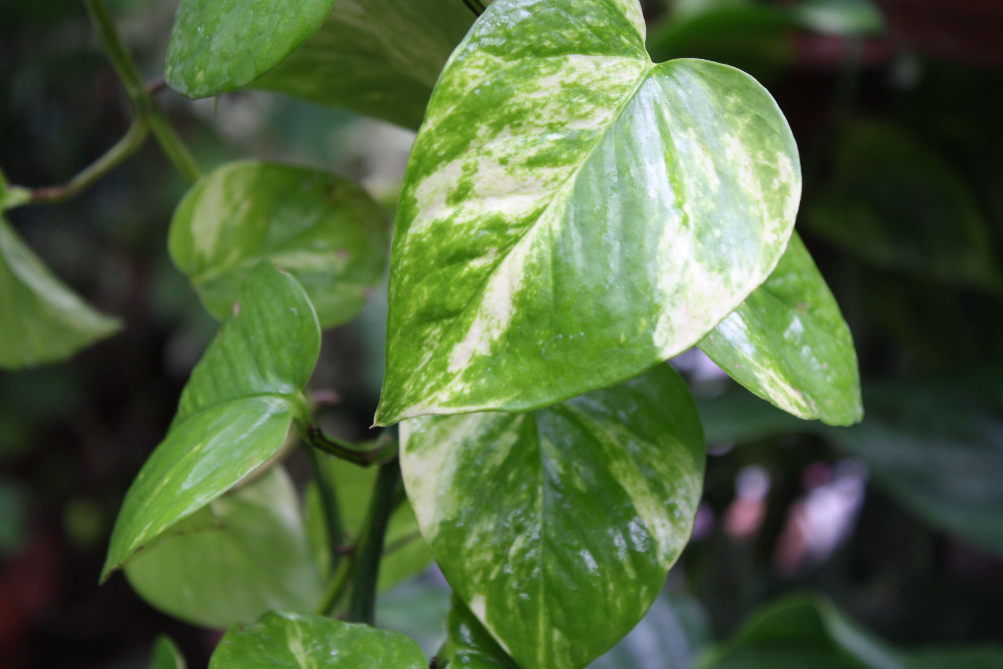 Morfoloģija. Mūžzaļš, daudzgadīgs liānveida, kāpelējošs lakstaugs ar veselām, tumši zaļām, 6-10 cm garām un 5-8 cm platām lapām, kurās ir zeltaini-dzelteni plankumi un svītras. Sasniedz vairāku metru garumu. Starp lapu mezgliem attīstās gaisa saknes, kuras sasniedzot augsni, tajā iesakņojas. Sakne gara un spēcīga. Telpās reti zied.