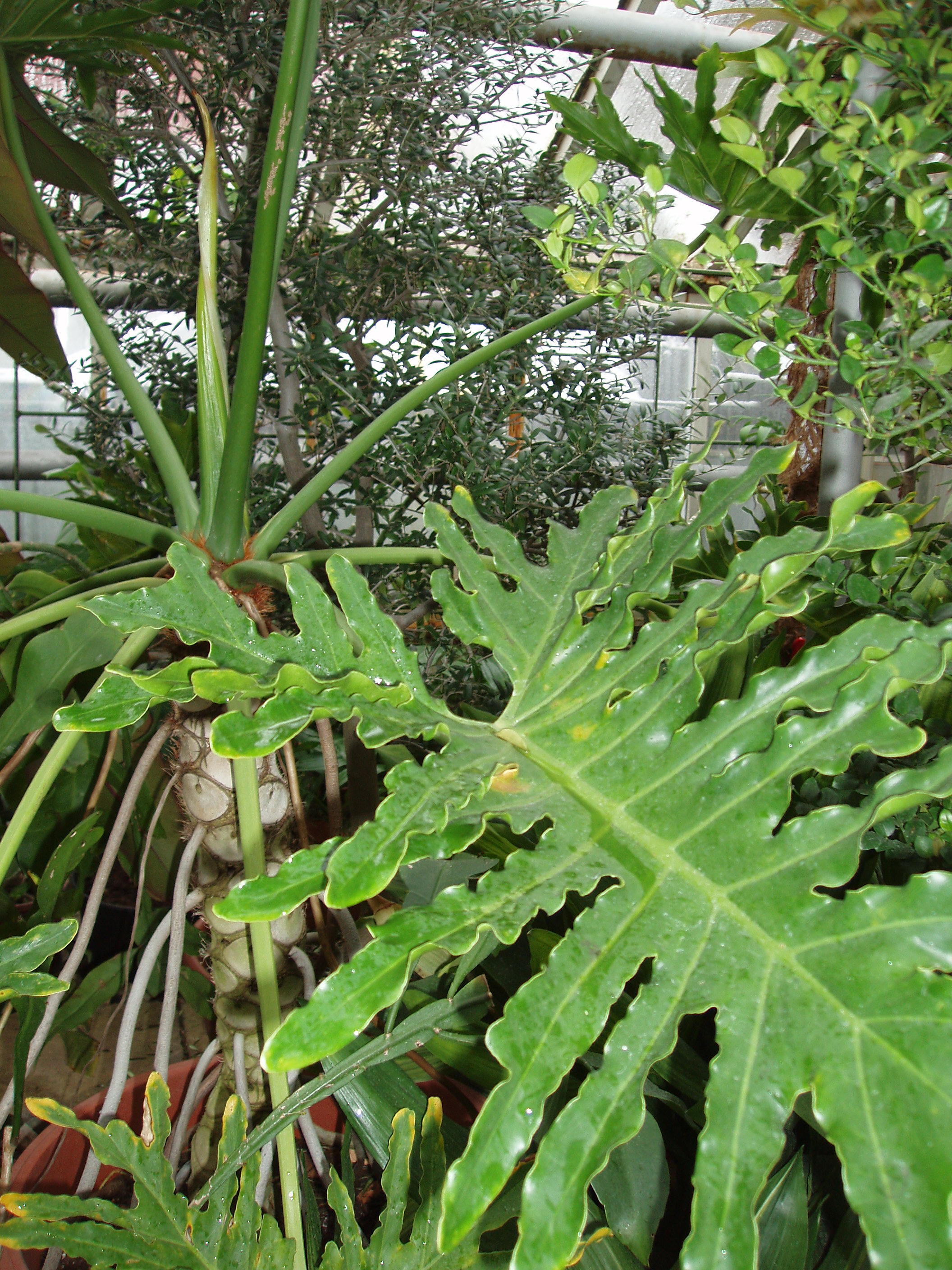 Morfoloģija. Mūžzaļa, daudzgadīga, lēni augoša liāna, 1-2 m augstumā ar pamatīgi resnu stumbru, uz kura redzami nokritušo lapu pamatņu nospiedumi. Spīdīgās, zaļās, divkārt šķeltās, milzīgās, sirdsveida lapas ir uz vairāk nekā 1 m gariem kātiem. Lapas vienmērīgi izkārtotas apkārt stumbram. Veidojas daudz gaisa saknes, kuras saniedzot augsni pārtop par balstsaknēm. Sakņu sistēma milzīga, gara un spēcīga. Telpās zied no agra pavasara līdz vasarai. Seglapa balta, ziedi vālītē krēmbalti. Sēklas telpās nenogatavojas.