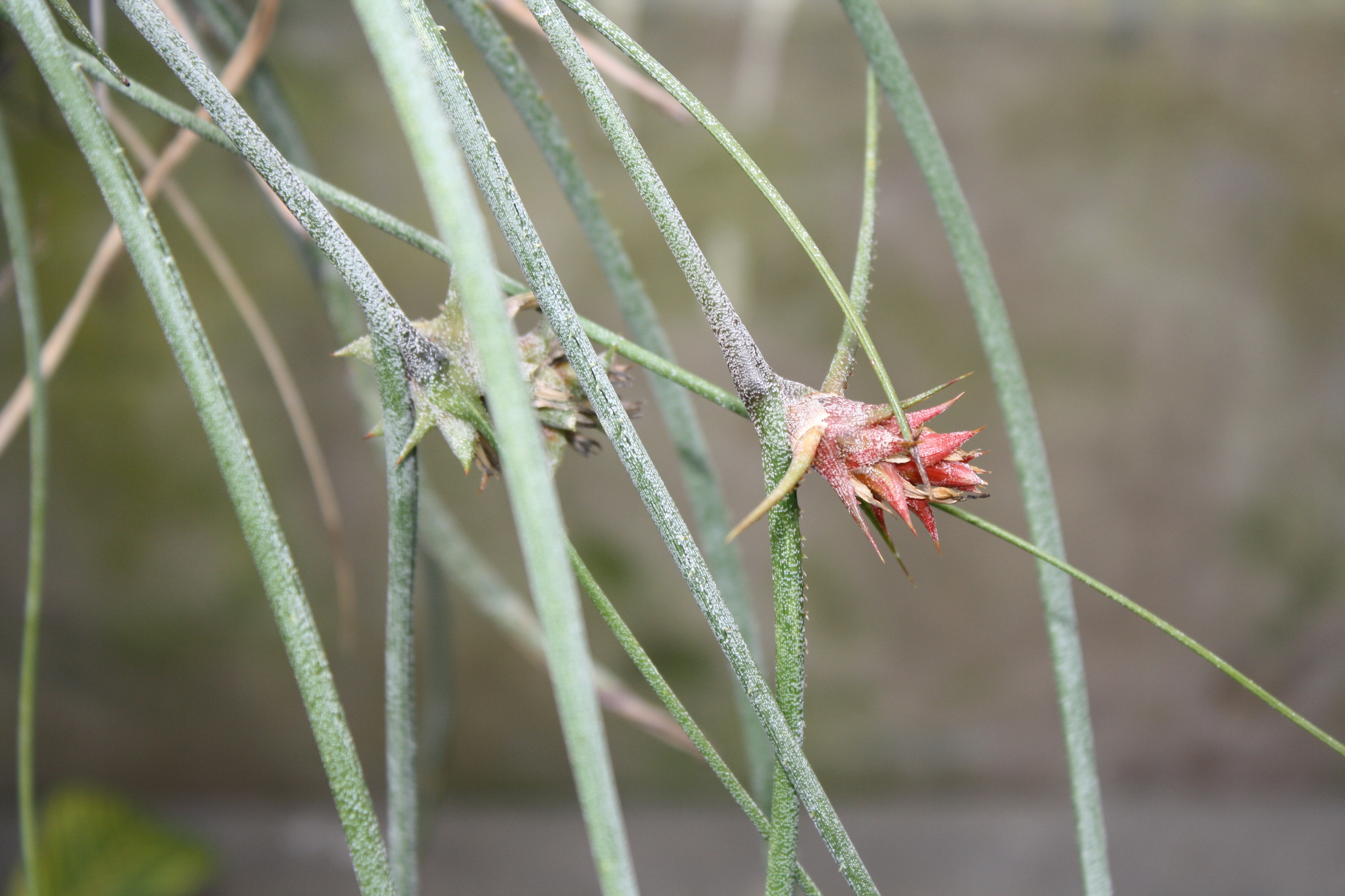 Morfoloģija. Mūžzaļš, daudzgadīgs lakstaugs, kuram maz izteikta sakņu sistēma. Tievie, šaurie, cietie, pelēkzaļie, 30-50 cm garie, nokarenie dzinumi veido biezu puduri. Uz dzinumiem attīstās čiekurveida, brūnganas ziedkopas, kurās uzzied balti sīki ziediņi. Zied vasarā.