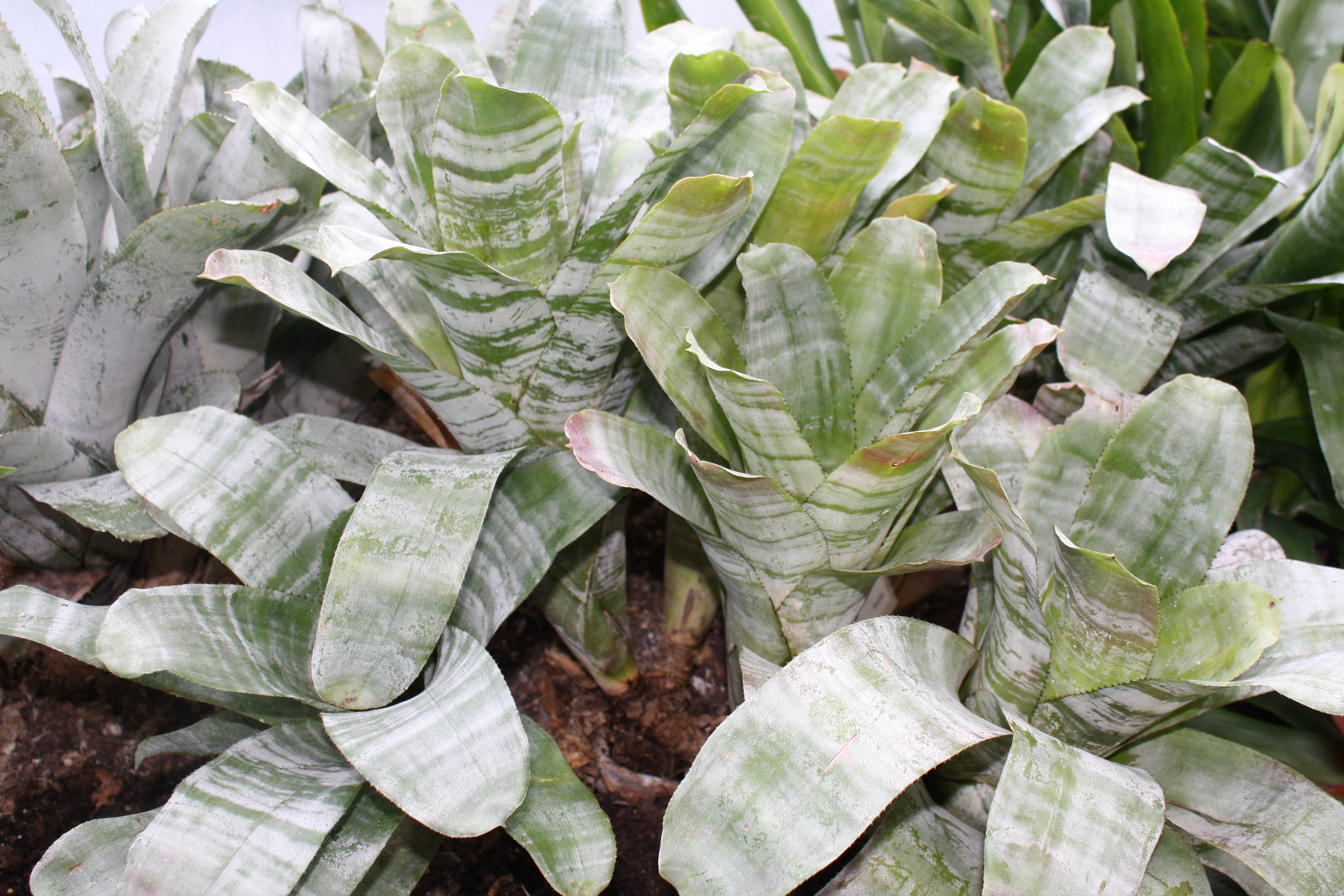 Morfoloģija. Mūžzaļš, daudzgadīgs lakstaugs ar sudrabaini pelēcīgām platām, malās nedaudz ielocītām malām lapām, kurās ir baltas šķērssvītras. Lapas veido simetrisku, kompaktu rozeti, kura izaug 30-40 cm augstumā. Lapu rozetē attīstās stingrs, resns ziedkāts, kura galotnē smagnēja spilgti rozā, vārpveida ziedkopa ar bālganiem, sīkiem ziediem. Ziedējusī lapu rozete iet bojā, bet pirms tam paspēj attīstīt pie sakņu pamatnes jaunos dzinumus.