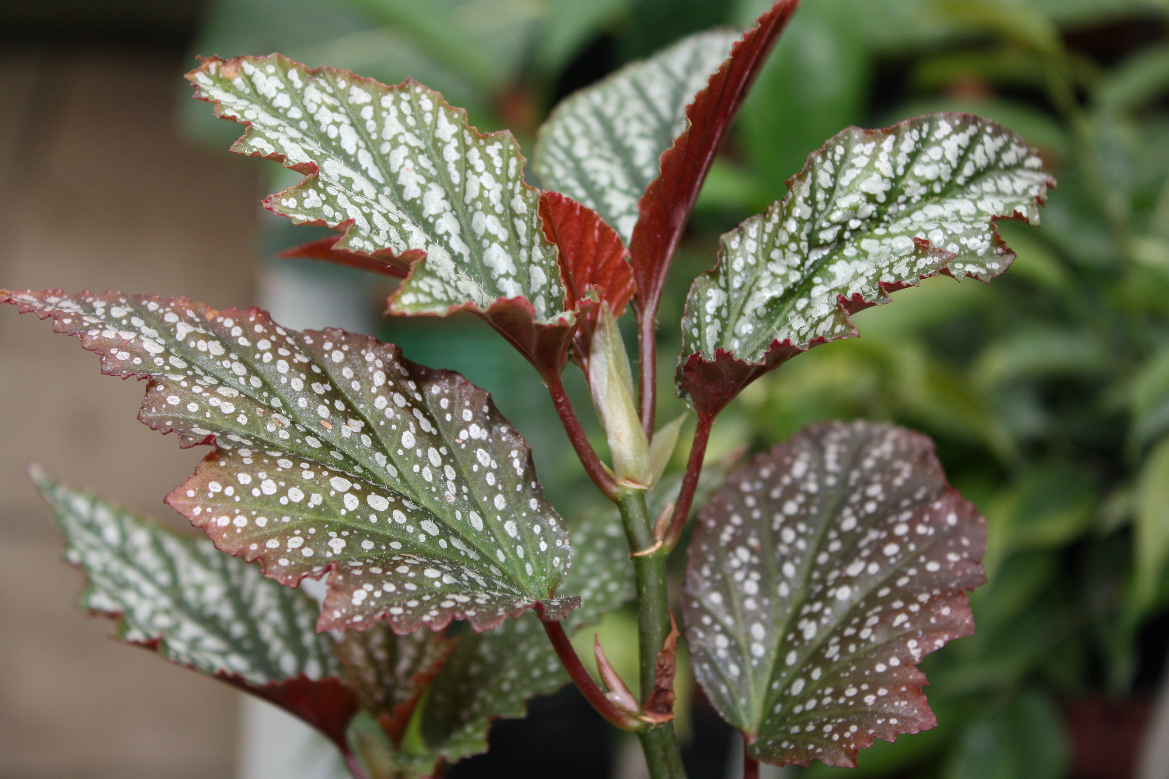 Morfoloģija. Mūžzaļš, daudzgadīgs lakstaugs, kas telpās izaug 1,5 un vairāk metru augsts. Stumbrs zarojas un veido ne pārāk kuplu krūmu. Asimetriskās lapas lielas, sulīgas, sudrabaini zaļas ar sudrabpelēkiem punktiem. Ziedi sarkanīgi, sulīgi, trausli, nokarenos ķekaros. Ziedi veidojas dzinumu galos. Zied pavasarī, vasarā. Spēcīga bārkšsakne.