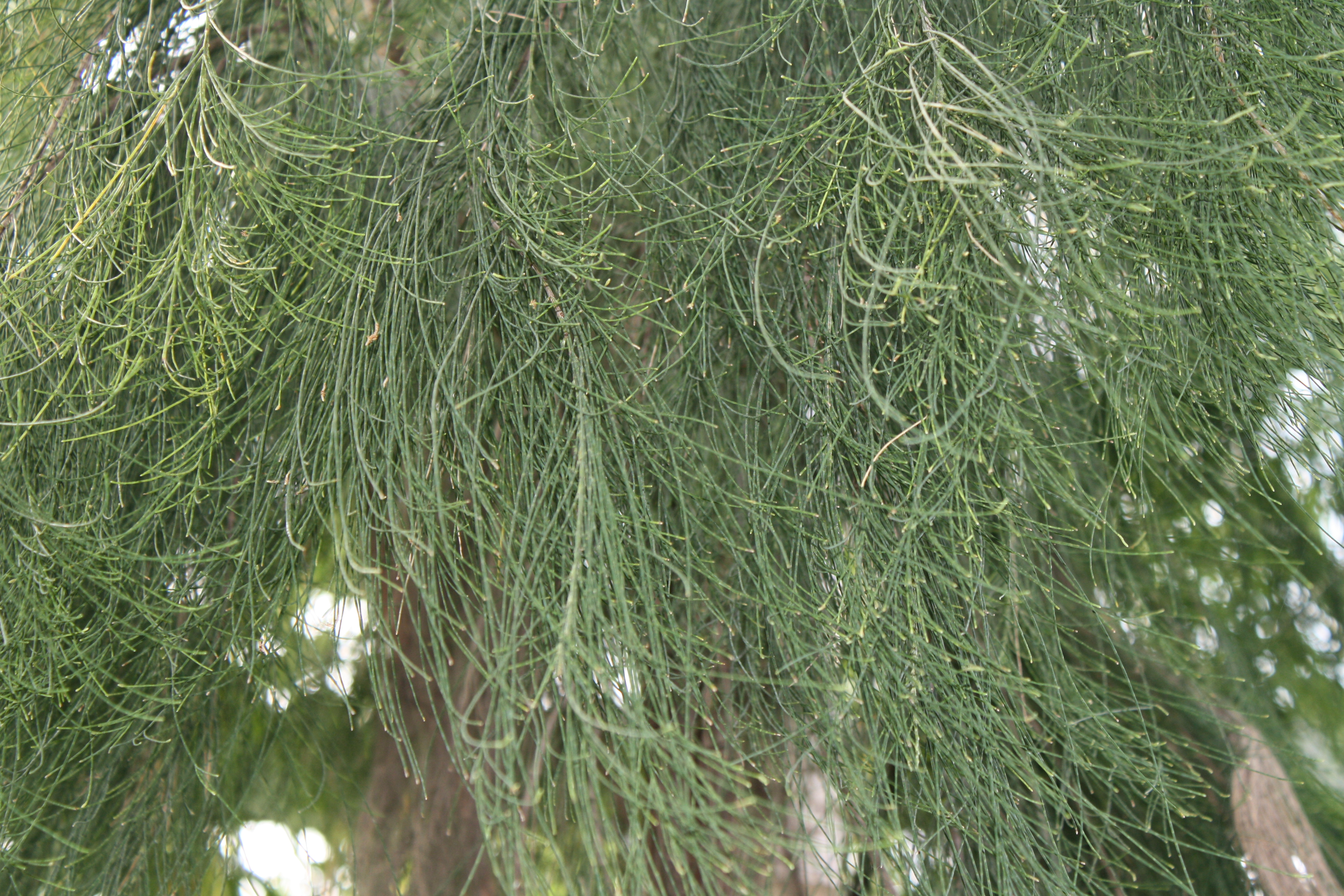 Morfoloģija. Mūžzaļš, daudzgadīgs koks, kas telpās izaug 2-4 metru augstumā. Garie, nokarenie zari ar lapām, kuras reducējušās līdz sīkām zvīņām, atgādina skujas. Zari sakārtoti mietturos. Auga izskats līdzinās milzu kosai. Liela un dziļa sakņu sistēma. Uz auga gan vīrišķie (dzeltenbrūnas vārpas), gan sievišķie (sarkanīgi čiekuriņi) ziedi. Zied ziemā.