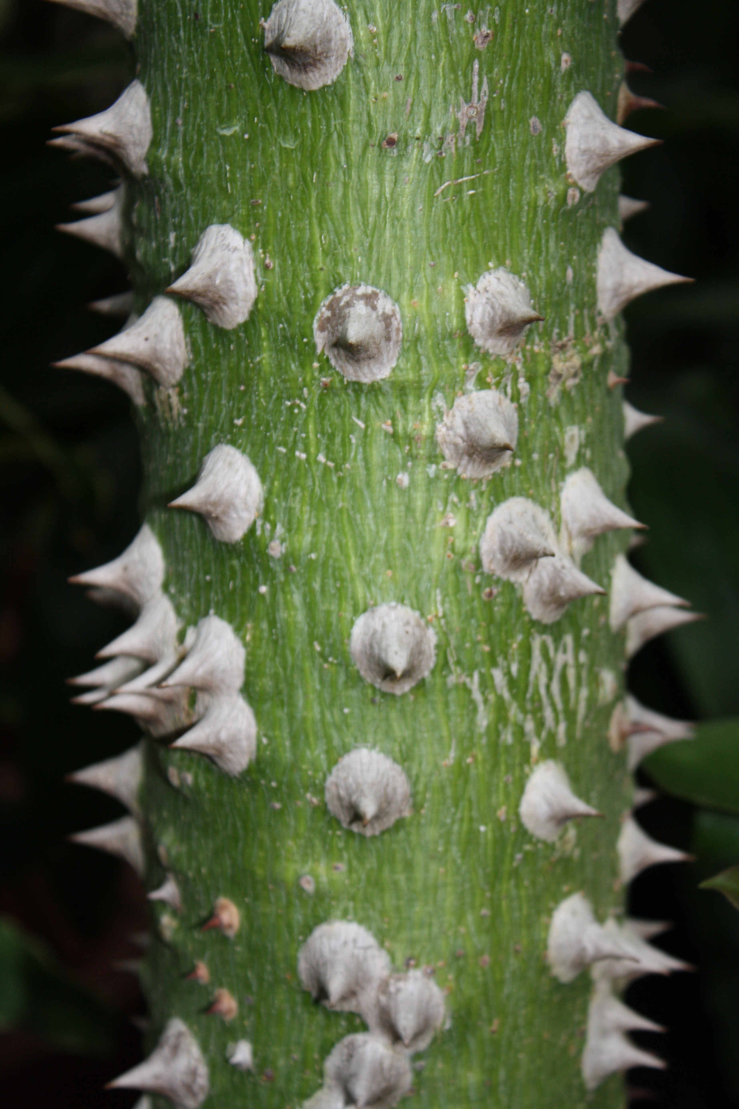 Morfoloģija. Mūžzaļš, daudzgadīgs koks, kas telpās izaug 4-6 un vairāk metrus augsts, ar pamatīgu pudeles veida stumbru, kur lielākais paresninājums ir vienas trešdaļas apakšā, kurā uzkrājas ūdens un barības rezerves. Viss taisnais, milzīgais, augstais stumbrs biezi klāts ar asiem trīsstūrveida, dzeloņiem. Spēcīga sakne. Lapas saliktas. Zied ar krēmkrāsas, 10-15 cm diametrā ziediem, kuriem ir 5 ziedlapas.