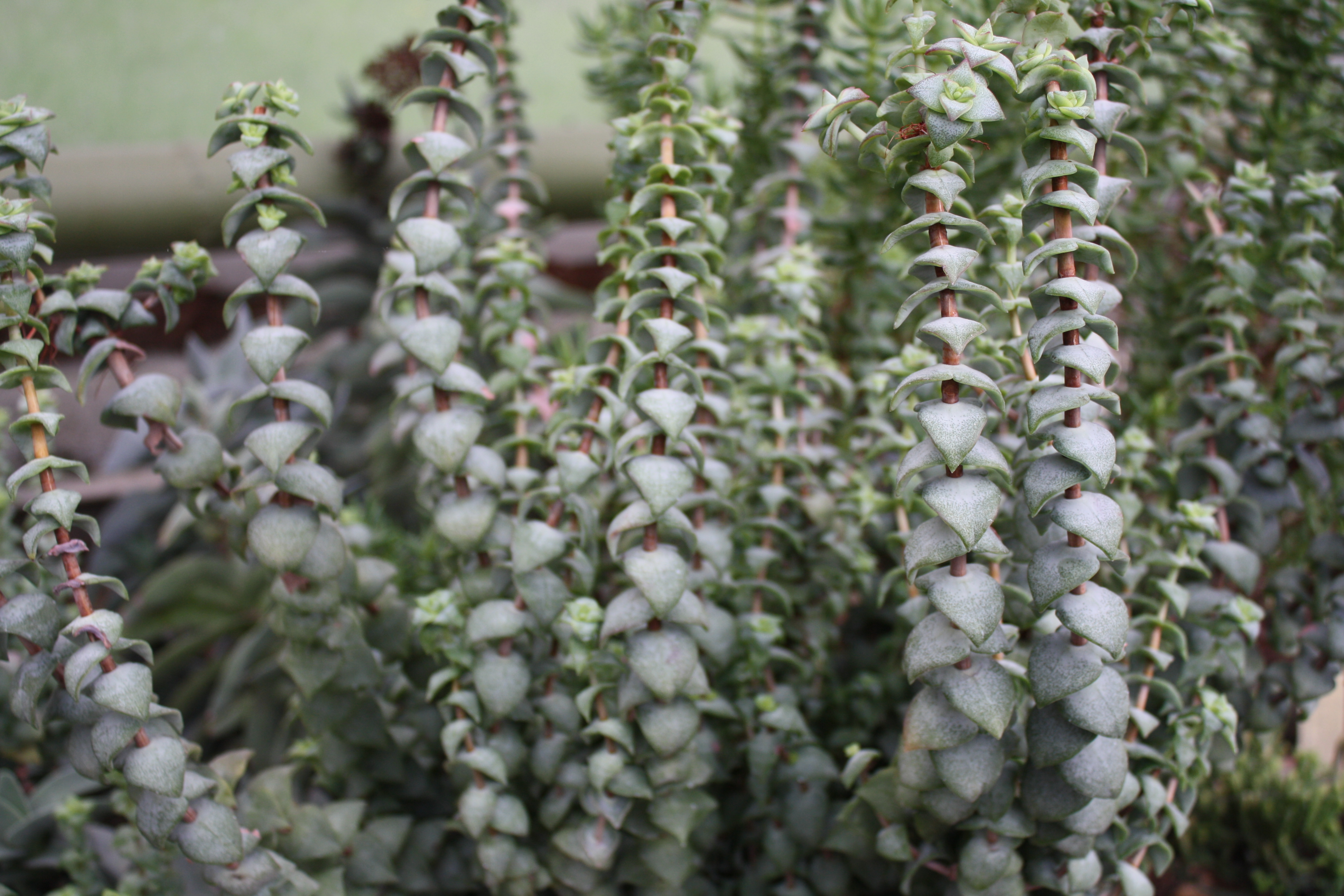 Morfoloģija. Mūžzaļš, daudzgadīgs, mazzarots, kokveidīgs augs ar slaidiem lapotiem stumbriem un zariem - sukulents, kurš telpās izaug līdz 30-50 cm augsts. Apakšējie stumbri, zari pārkoksnēti, lapas sakārtotas pa pāriem. Lapas punktainas, ar gludu malu, biezas, uz malām plānākas, pelēkzaļas. Zied ziemā, pavasarī. Ziedi skarās, dzeltenīgi, dzinuma galos.