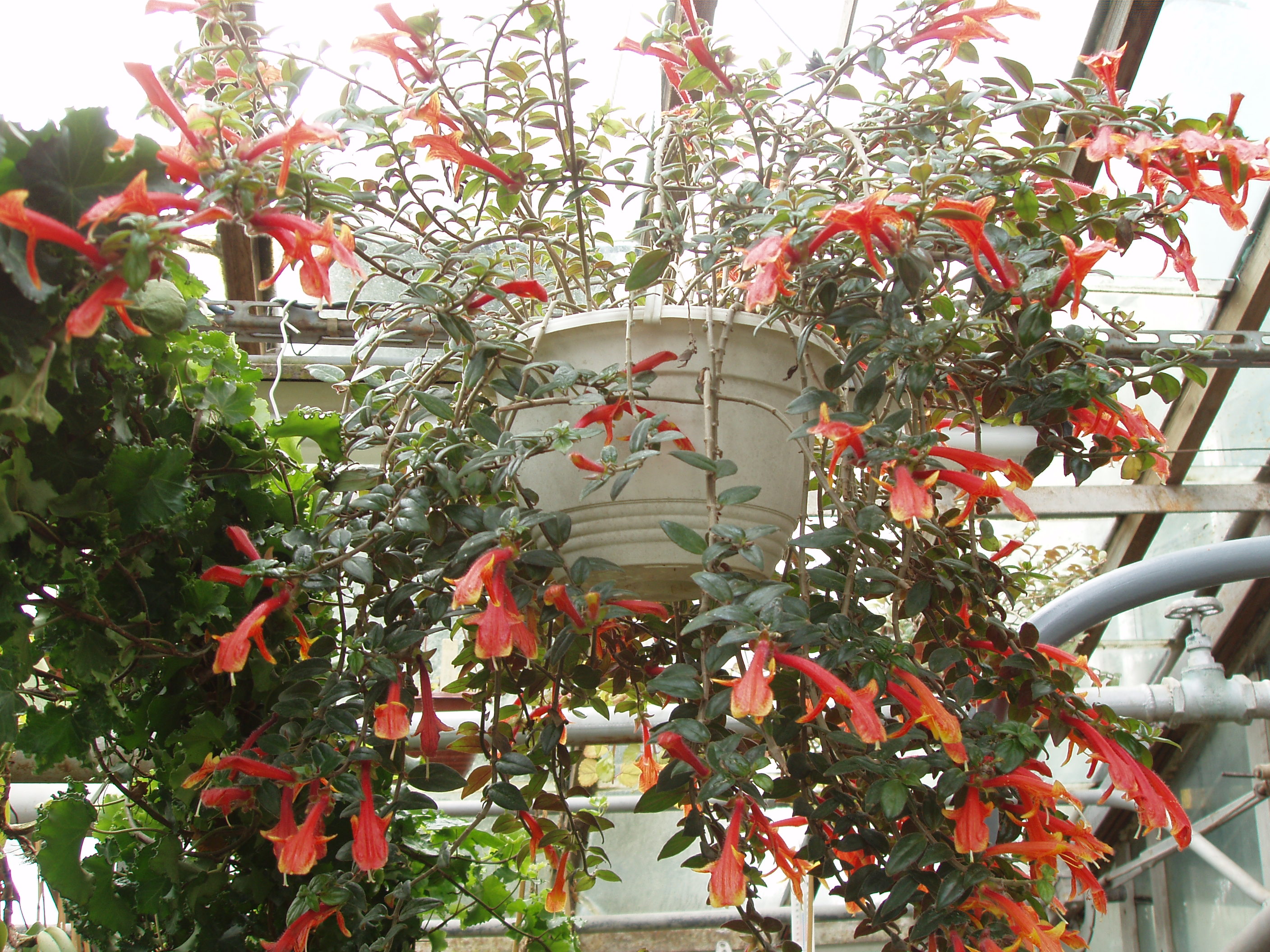 Morfoloģija. Mūžzaļš, daudzgadīgs lakstaugs ar ložņājošiem vai nokareniem dzinumiem, kuri telpās izaug 60-80 cm gari. Stumbri vienmērīgi klāti ar gareni ovālām, tumšzaļām, gaļīgām, nelielām lapām. Dzinuma galos, lapu žāklēs attīstās spilgti sarkani, 6-8 cm gari stobrziedi. Zied no pavasara līdz vasaras beigām.