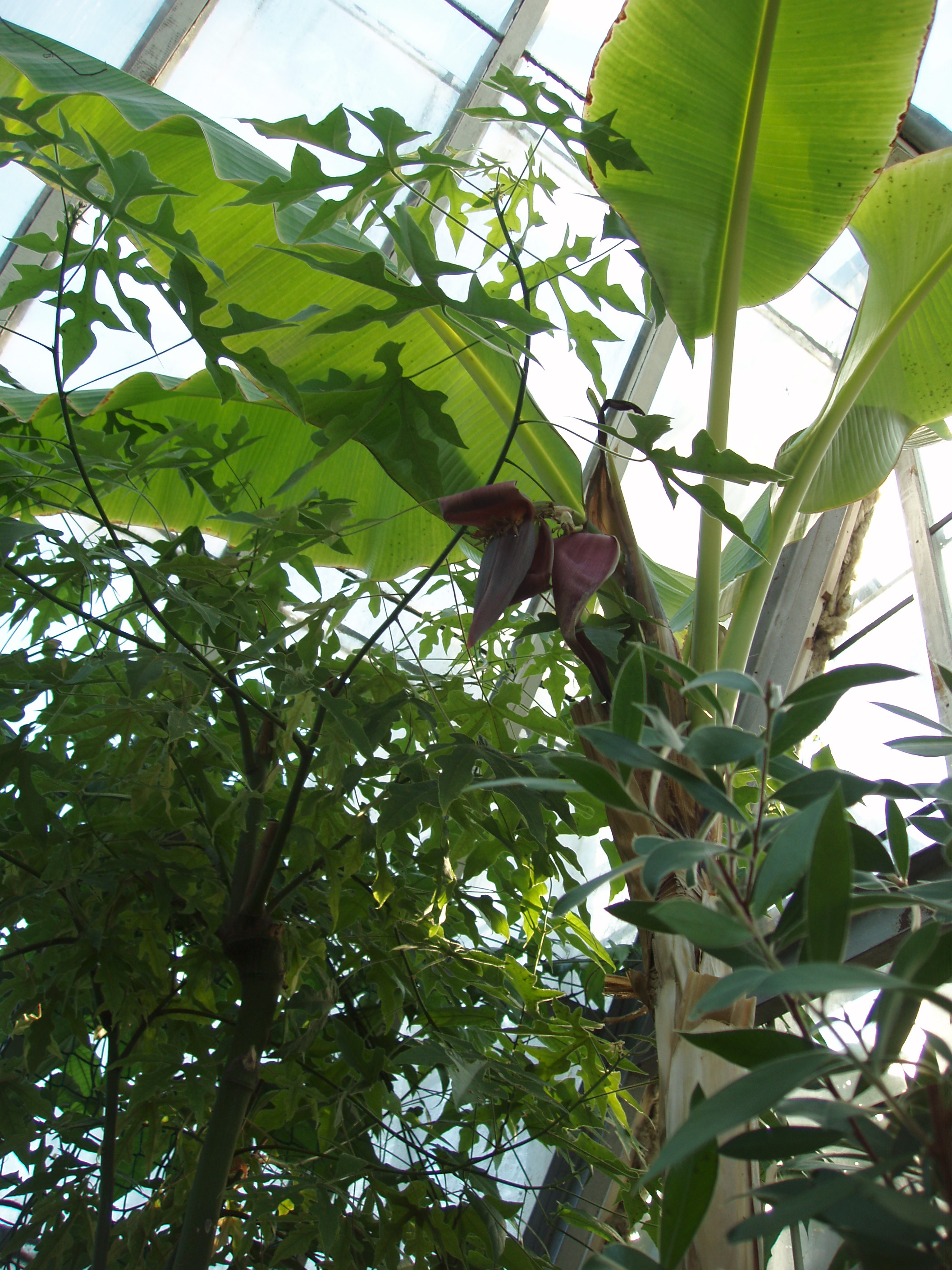 Morfoloģija. Mūžzaļš, daudzgadīgs lakstaugs ar neīsto stumbru, kas telpās sasniedz 5 m augstumu. Garā stumbra galā 6-7 milzīgu, koši zaļu lapu rozete. Lapas 2m garas un 50-60 cm platas. Vairākgadīgais augs no lapu rozetes vidus veido rozā, nokarenu ziedu. Pēc noziedēšanas, ienākas mazi augļi – pliekanas garšas banāni. Ziedējusī lapu rozete iet bojā, pirms tam, paspējot izveidot no saknēm jaunus dzinumus. Zied pavasarī.