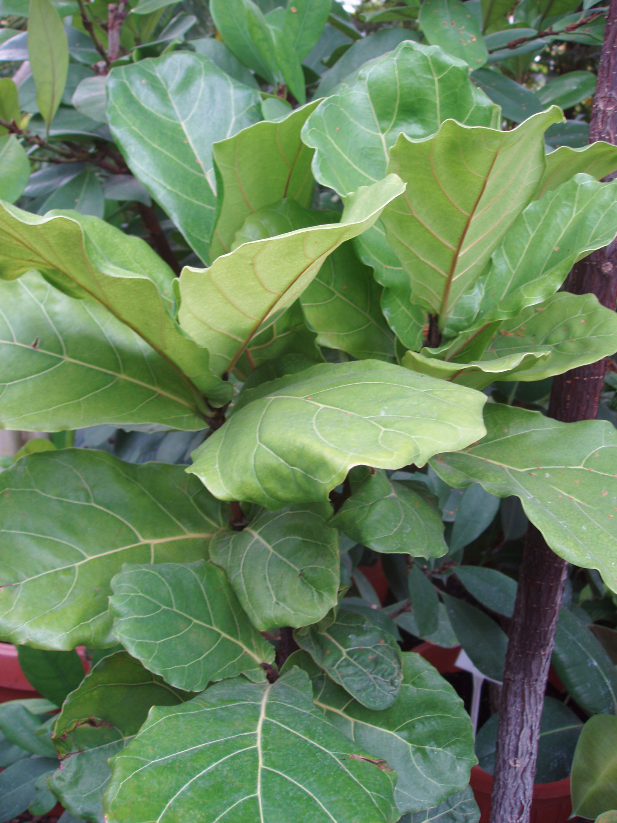 Morfoloģija. Mūžzaļš, daudzgadīgs koks vai krūms, kurš telpās izaug 3-4 metru augstumā. Padodas griešanai, bet slinki veido zarus. Tumši zaļās lapas 30-40 cm garas un ap 20 cm platas, ar izteiktām dzīslām, starp dzīslām lapas uzpūstas. Lapas ar ļoti īsu kātu. Telpās nezied.