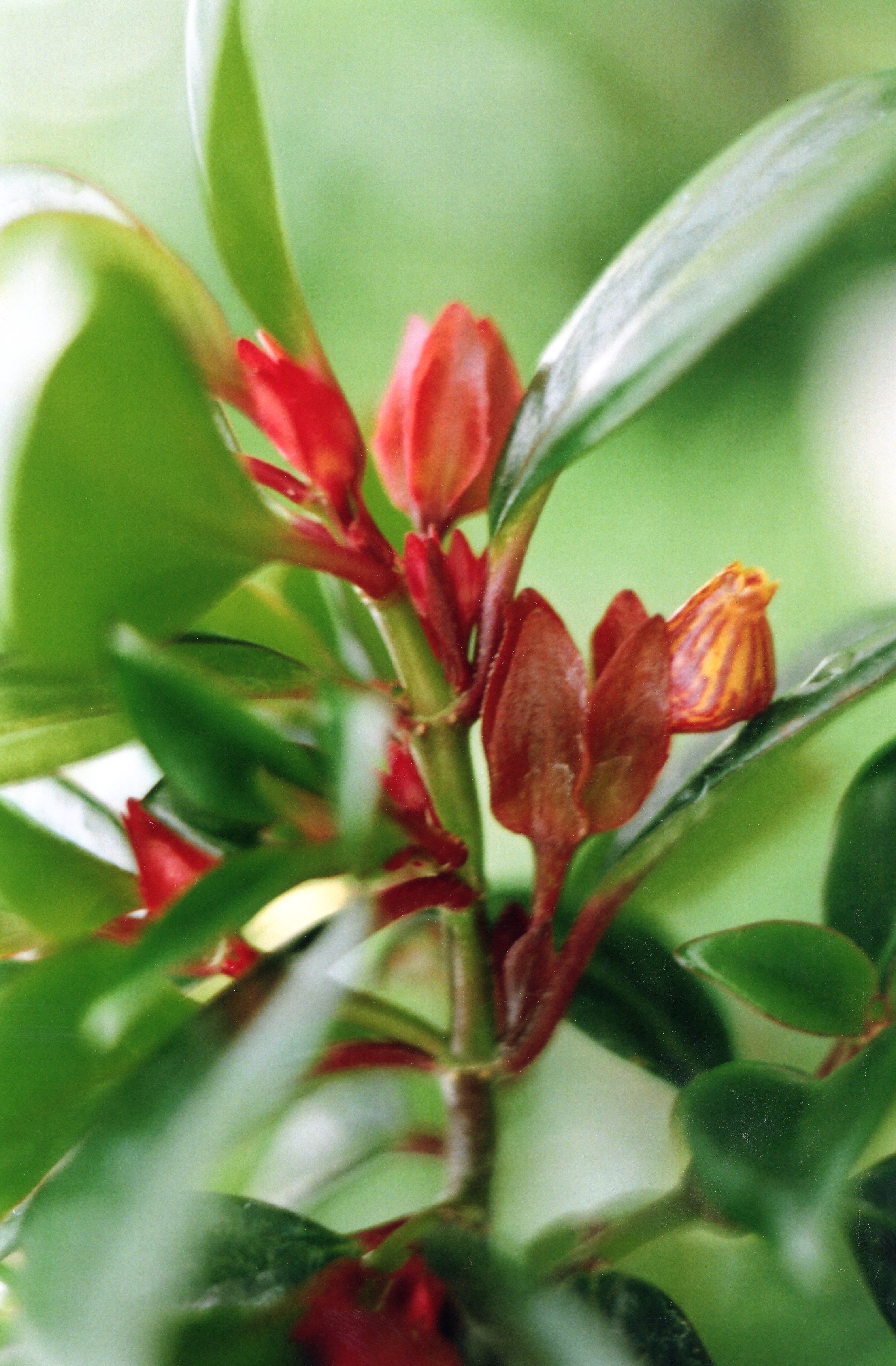 Morfoloģija. Mūžzaļš, daudzgadīgs 20-25 cm augsts lakstaugs ar stāviem dzinumiem, kuri vecākiem augiem viegli noliecas. Dzinumi nedaudz zarojas. Spīdīgas, ādainas, biezas, tumši zaļas, mazas lapas. Dzinuma galos vasarā parādās oranždzelteni ziedi ar nedaudz viļņotām vainaglapām. Sakne, neliela, bārkšveida.