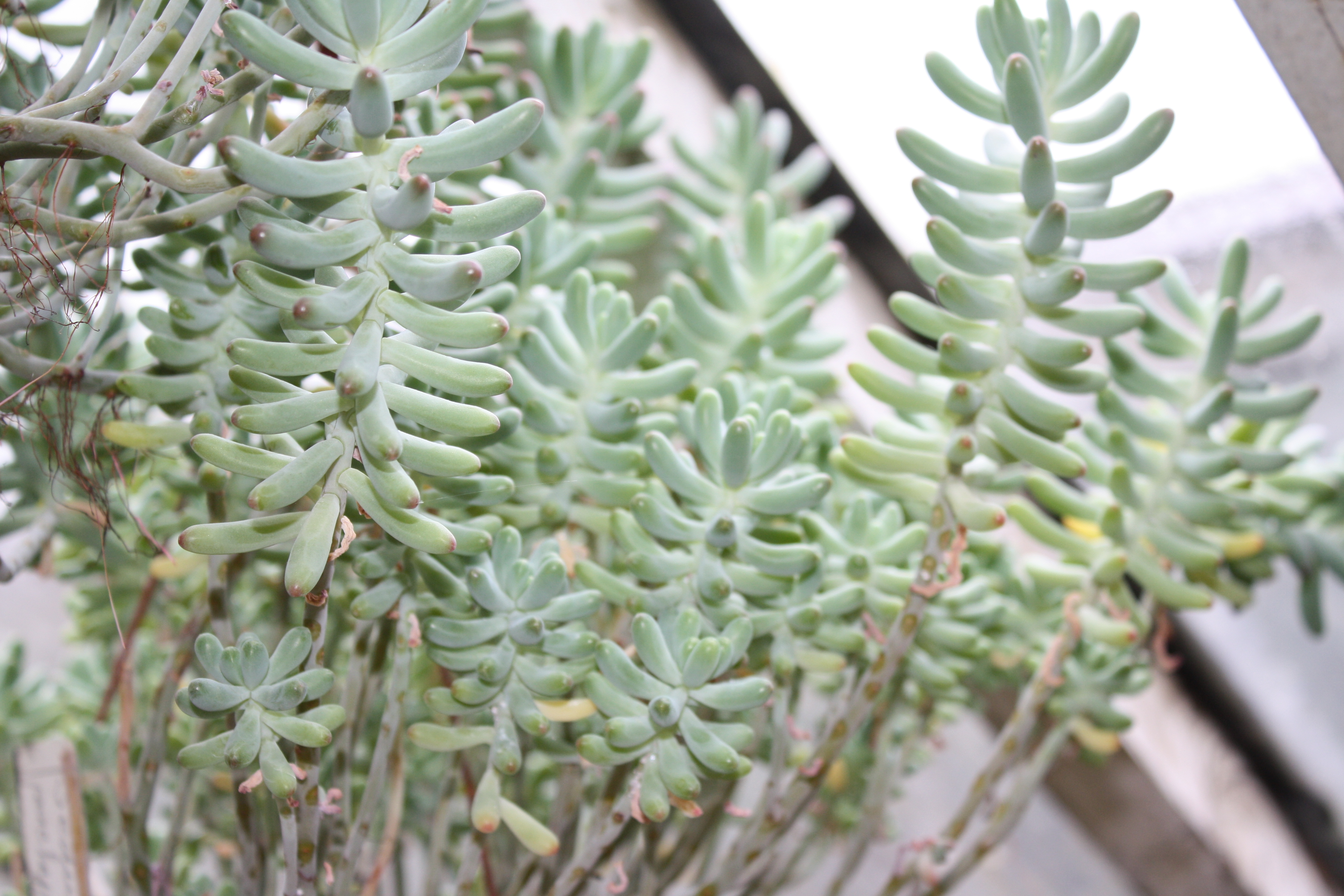Morfoloģija. Mūžzaļš, daudzgadīgs 20-25 cm stāvs, augsts, daudzzarains lakstaugs, puskrūms, kuru klāj gaišas, pelēkzaļas, apaļas, garenas lapas, kuras noapaļotais gals krāsojas sārtā krāsā. Ziedkopa uz gara kāta attīstās dzinuma galotnes sānos. Ziedi dzelteni. Zied daudzgadīgi sukulenti vasarā. Telpās zied ļoti reti, jo nesaņem augam nepieciešamo gaismas daudzumu.