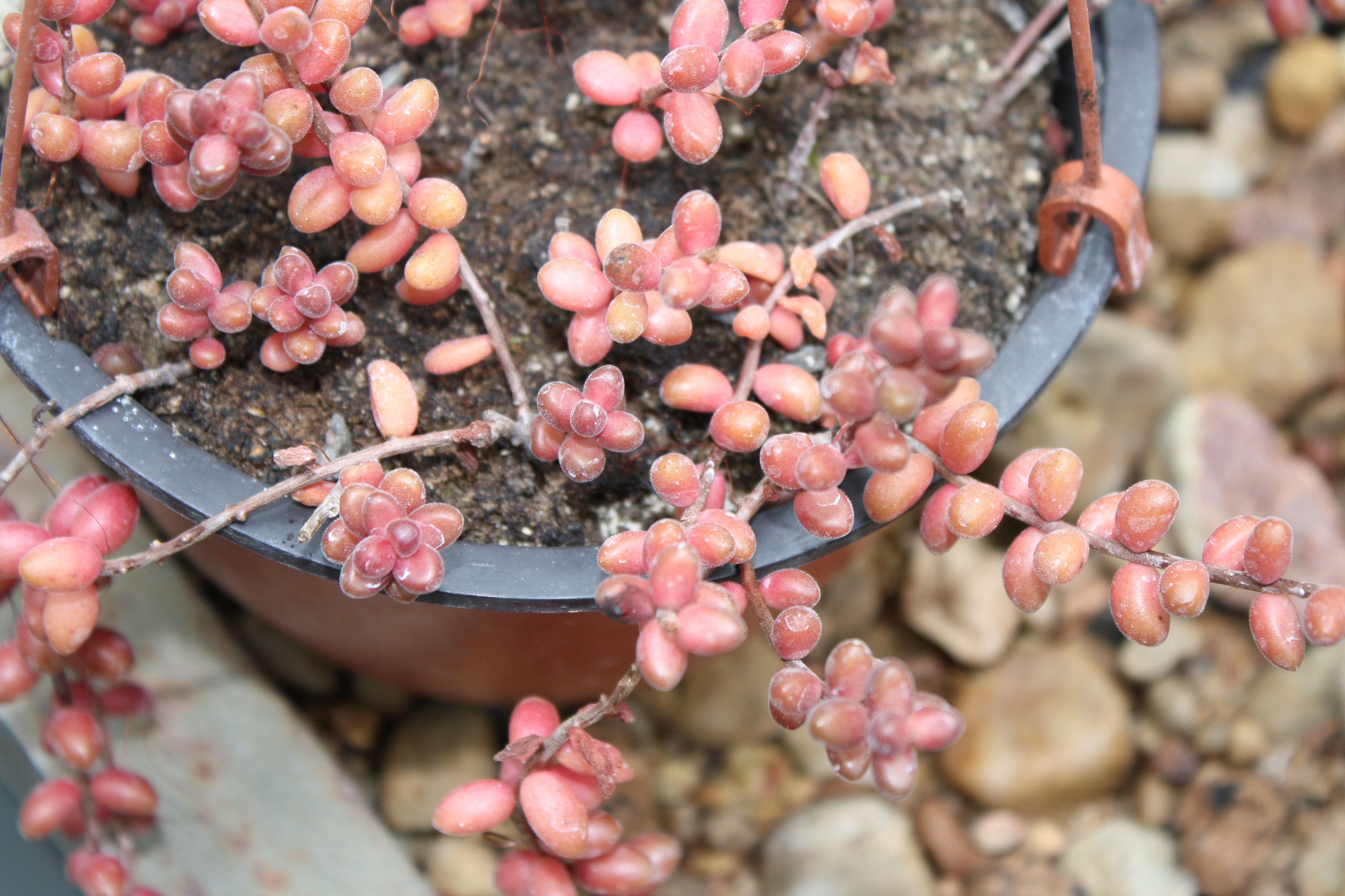 Morfoloģija. Mūžzaļš, daudzgadīgs līdz 30 cm augsts, mazzarots puskrūms ar stiepļveidīgiem, sākumā smalki matotiem, paciliem, vēlāk noliektiem stumbriem. Lapas sarkanbrūnas, veltņveidīgas, gandrīz apaļas, ar smalku matojumu. Zied vasarā ar dzelteniem ziediem apkārt dzinuma galotnei. Ārkārtīgi jūtīgs pret slāpekļa mēslojumu un lieku mitrumu, tie izraisa lapu biršanu un nekrāsošanos. Ilgstošs sausums un kālija, fosfora mēslojums veicina sārtā pigmenta veidošanos lapās.