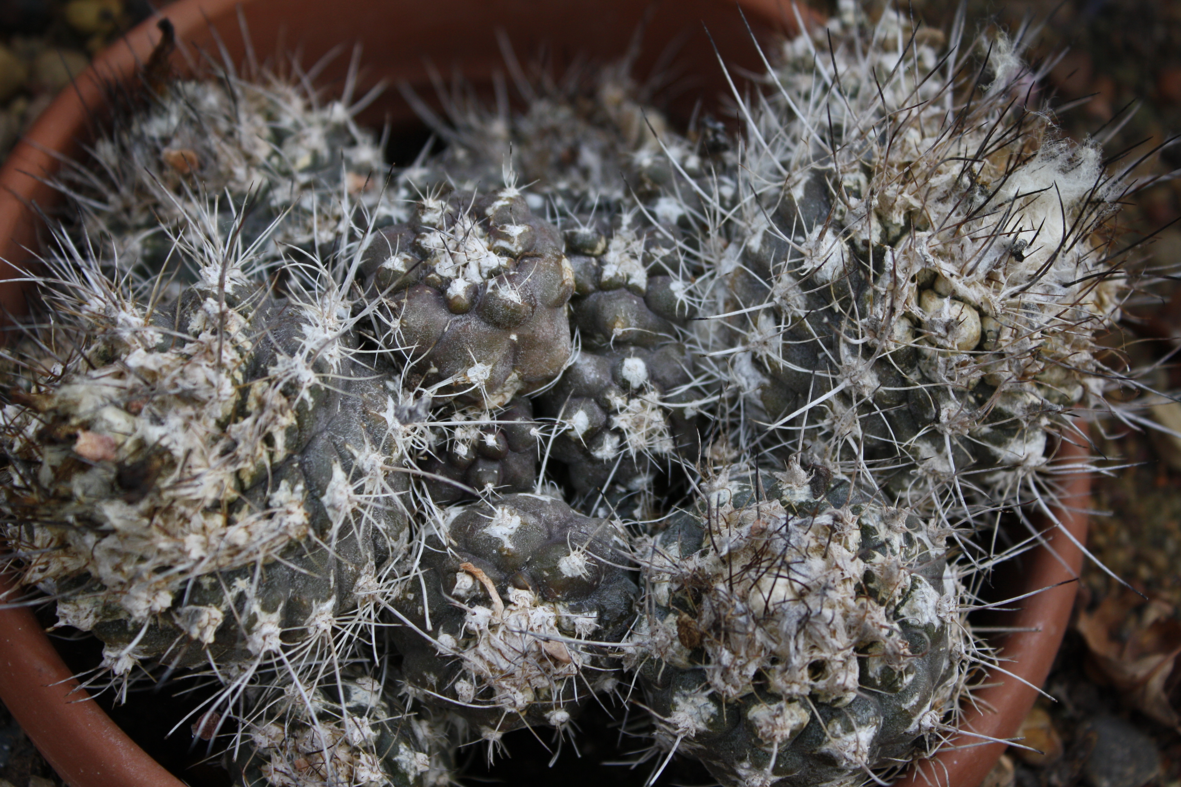 Morfoloģija. Daudzgadīgs, mūžzaļš neliels, apaļas formas, pelēkzaļš ar brūnu nokrāsu kaktuss, kas telpās izaug 5 cm augstumā un 4 cm diametrā, ar 10-12 ribām. Pie vecākauga sakņu kakla attīstās jaunie dzinumi. Areolā 1 centrālais ērkšķis 2 cm garumā un sānu ērkšķi 10-12 līdz 1 cm gari. Visi ērkšķi pelēki, taisni. Ziedi 2-3 cm diametrā, gaiši dzelteni. Zied pavasarī, vasaras sākumā.