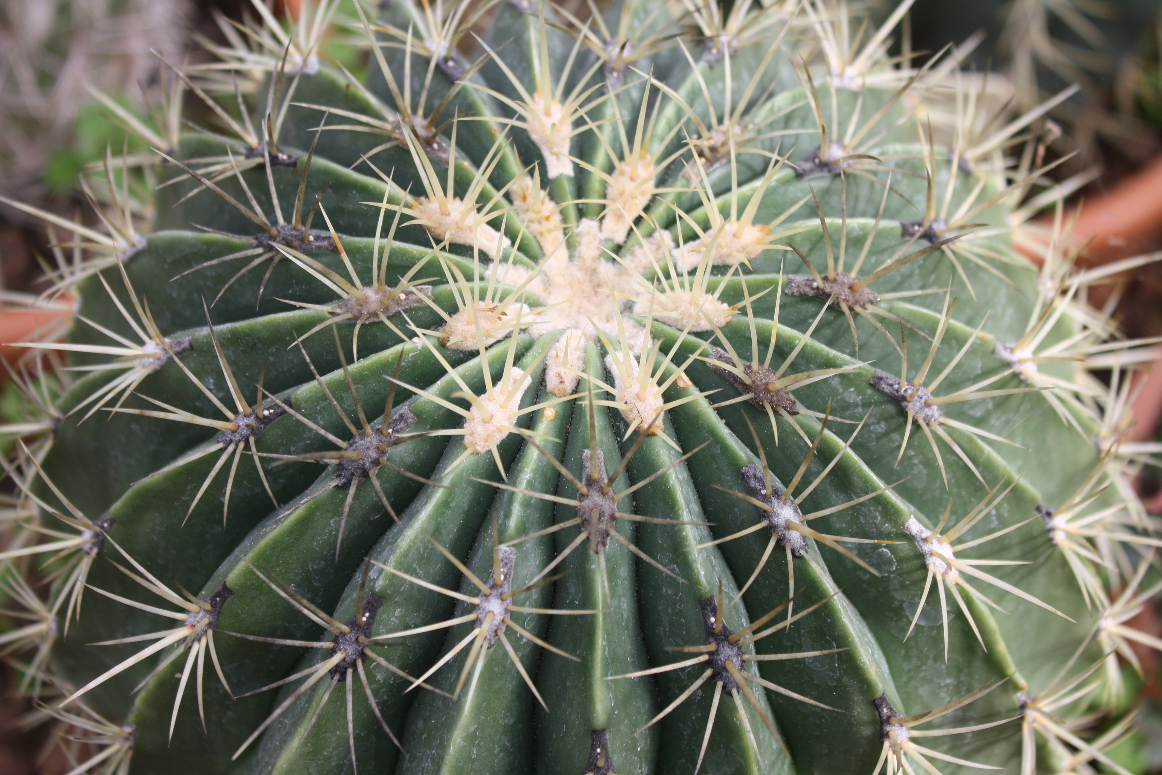 Morfoloģija. Daudzgadīgs, ap 50 cm augsts, mūžzaļš kaktuss ar zilganzaļu, apaļu, vēlāk cilindrisku stumbru, kuru sedz samtaina epiderma. Ribas 20-26, augstas, paugurainas. Pelēkbaltās areolās 10 malējie ērkšķi 2-3 cm gari, 3-4 centrālie ērkšķi, no kuriem viens ir 6 cm garš. Visi ērkšķi sarkanīgi dzelteni. Zied galotnē ar gaiši dzelteniem ziediem. Telpās zied reti.