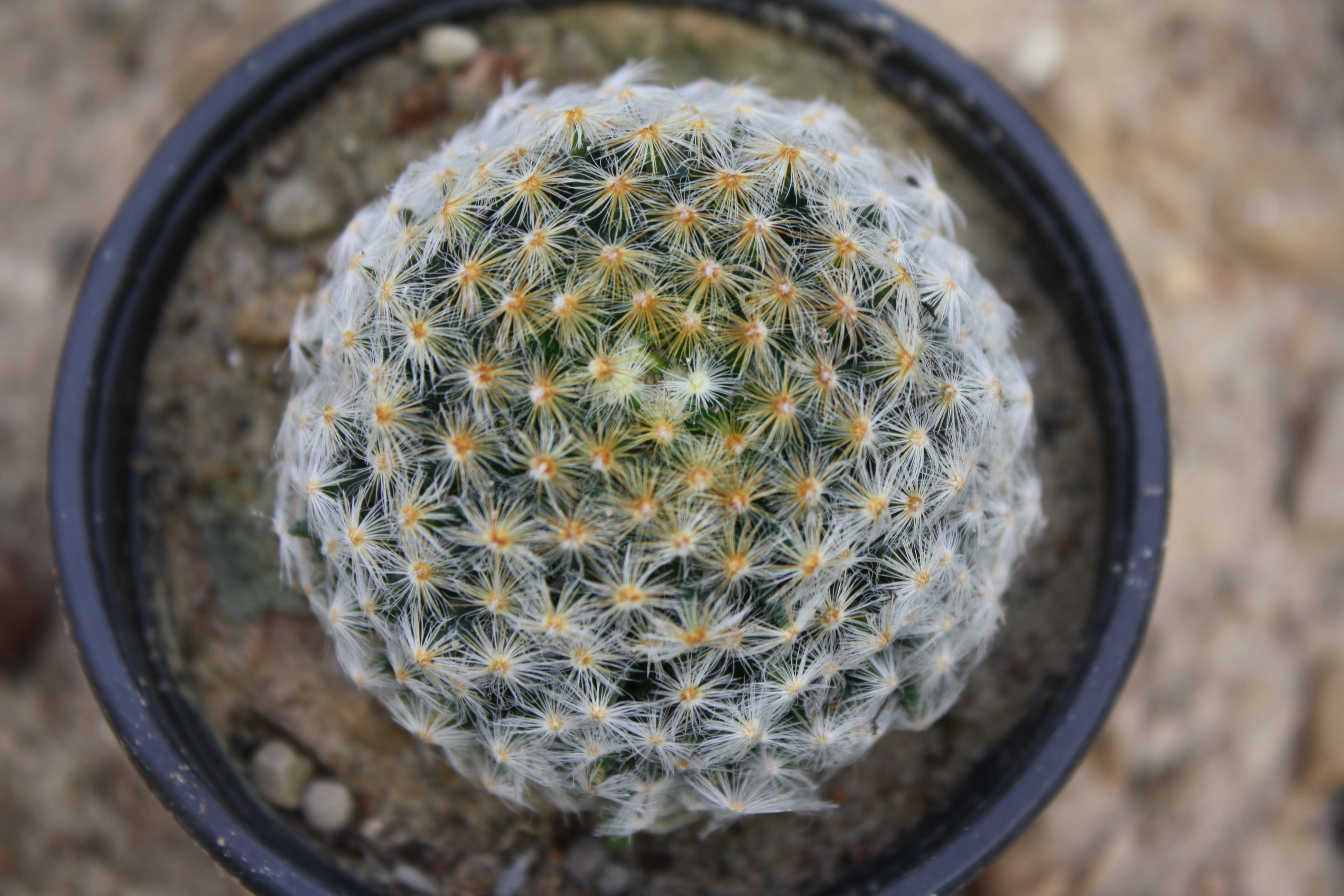 Morfoloģija. Daudzgadīgs, mūžzaļš, spilgti zaļš, sākumā apaļš, vēlāk garens kaktuss, kurš pie pamata bagātīgi zarojas, veido sāndzinumus. Telpās izaug 15-20 cm garumā un vēl vairāk platumā. Mamilas mīkstas, 1 cm garas. Areolas mazas, kailas. Aksilas ar gariem, baltiem matiem. Sānu ērkšķi 50-70, balti, ar zeltdzelteniem galiem, ļoti smalki, 0,4 cm gari. Centrālo ērkšķu nav. Ziedi zaļbalti līdz krēmkrāsas, piltuvveida, 1,5 cm diametrā un tikpat gari. Augļi karamīnsarkani, ovāli, 2,5 cm gari.