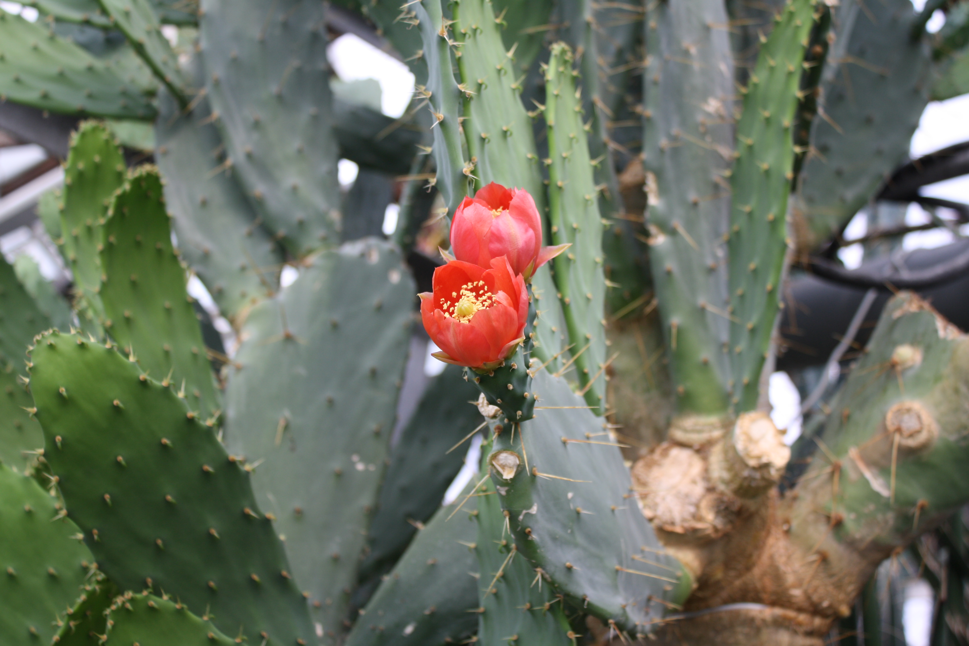 Morfoloģija. Daudzgadīgs, mūžzaļš, gaiši zaļš, liels, krūmveida kaktuss, kurš veido daudz sāndzinumus, kuri nedaudz noliecas. Telpās izaug 2-3 m garumā un vēl vairāk platumā. Sānu dzinumi, plakanas, garenas, noapaļotas formas, līdz 20-30 cm gari, 10-15 cm plati. Areolās 1 centrālais ērkšķis 2 cm garš, sānu ērkšķi 2-3, ap 1 cm gari un 2-4 glohīdijas, kuras ar laiku izkrīt. Ērkšķi un glohīdijas gaišā smilšu krāsā. Ziedi oranžsarkani ap 4-7 cm diametrā. Augļi sarkanīgi dzelteni. Zied vasarā.