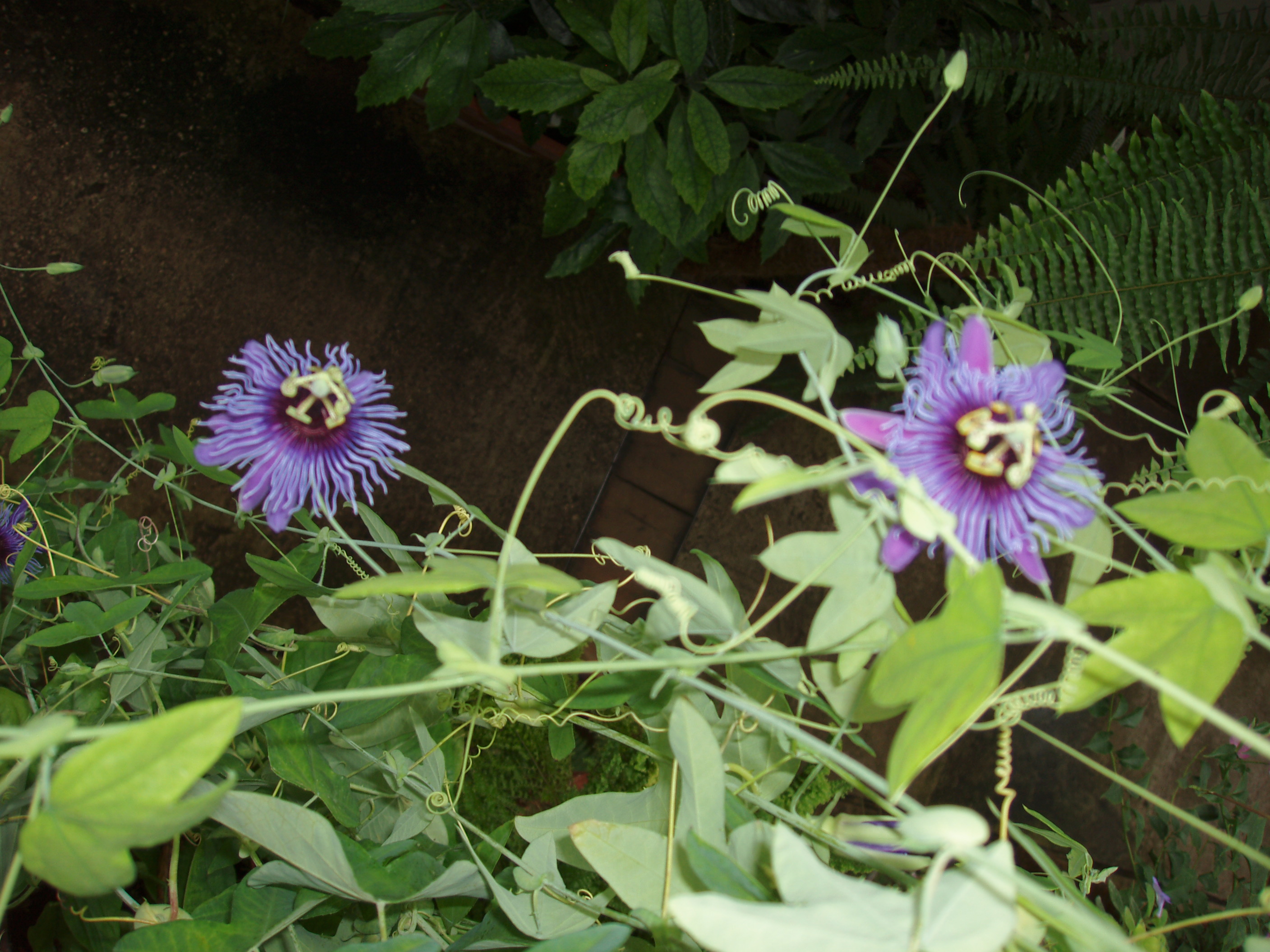 Morfoloģija. Mūžzaļa, daudzgadīga liāna, kas telpās izaug vairāku metru garumā. Tumši zaļās lapas ar pielapēm, pretējas ar īsiem kātiņiem, staraini daivainas. Lapas plātne gluda, ādaina. Lapas žāklēs attīstās vītes, ar kurām augs pieķeras pie balsta. Ziedi veidojas lapu žāklēs pa vienam. Ziedam piecas kauslapas, piecas vainaglapas, pēdējās violetā krāsā. Starp vainaglapām un putekšņlapām atrodas divos gredzenos garas, zilganvioletas bārkstis. Zieda lielums 6-8 cm diametrā. Zied pavasarī, vasarā, rudenī. Ienākas plūmes lieluma, ēdams auglis ar sēklām.