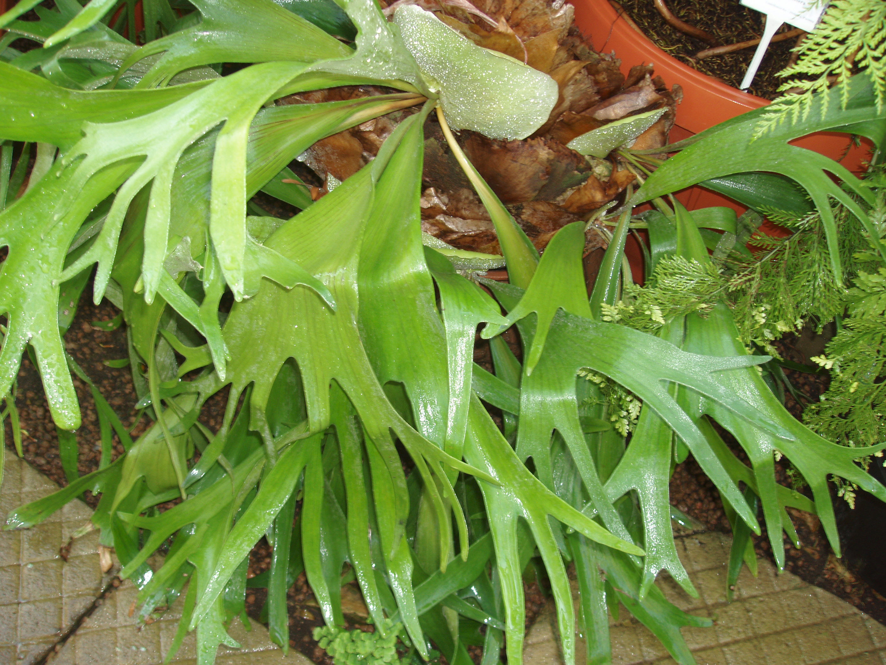 Morfoloģija. Mūžzaļa, daudzgadīga, daudzlapaina epifītpaparde, kura telpā sasniedz 50-70 cm garumu. Papardei ir divu veidu lapas – neauglīgās, sterilās, kuras ir lielas, noapaļotas, piespiestas pie koka stumbra, uzkrāj trūdus; auglīgās, fertilās kalpo fotosintēzei un sporu ražošanai, tās vērstas uz augšu vai ir nokarenas, veidojot izplestu ragu formu. Auglīgo lapu virspuse klāta ar gaišu pelēkbaltu pūku. Tradicionālo sakņu papardei nav.