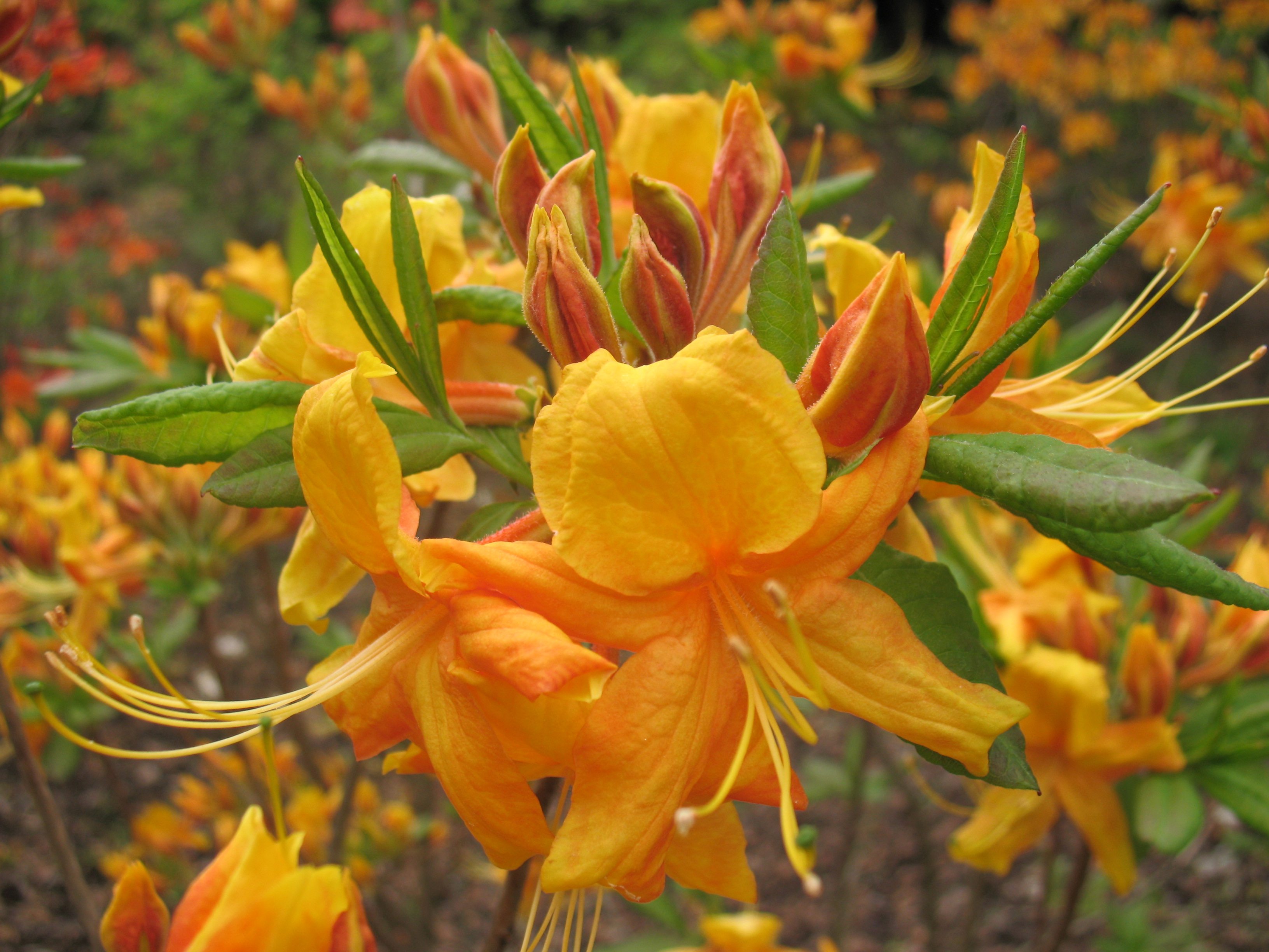 Morfoloģija. Vasarzaļš krūms ar platu vainaga formu. 10 gados sasniedz 1,5 m augstumu un 1,8m platumu. Lapas virspusē zaļas, apakšpusē gaiši zaļas, eliptiskas, lielas, līdz 15 cm garas un līdz 5 cm platas. Ziedi stobrveida piltuvveida, 8 cm diametrā, gundegu dzeltenā krāsā, viegli krokoti, smaržīgi. Sakārtoti apaļās, līdz 17 ziediem lielās ziedkopās. Zied maijā - jūnijā.