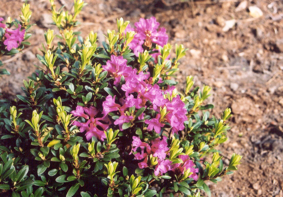 Morfoloģija. Mūžzaļš, ilgmūžīgs, neliels krūms. Pārsvarā izaug 0,3-0,5m bet savvaļā mēdz būt arī 1m augsts. Dzinumi resni, īsi, pelēki, blīvi izvietoti. Lapas otrādi olveida ar ierotītām malām, 1-3 cm garas un 0,8-1,2 cm platas, virspusē koši zaļā krāsā, kailas, spīdīgas, apakšpusē ar bāliem zvīņu dziedzeriem. Ziedi šauri piltuvveida, sakārtoti ziedkopās pa 3-10, purpurrozā līdz koši purpursarkani, 1,5 cm gari. Zied jūnijā-jūlijā.