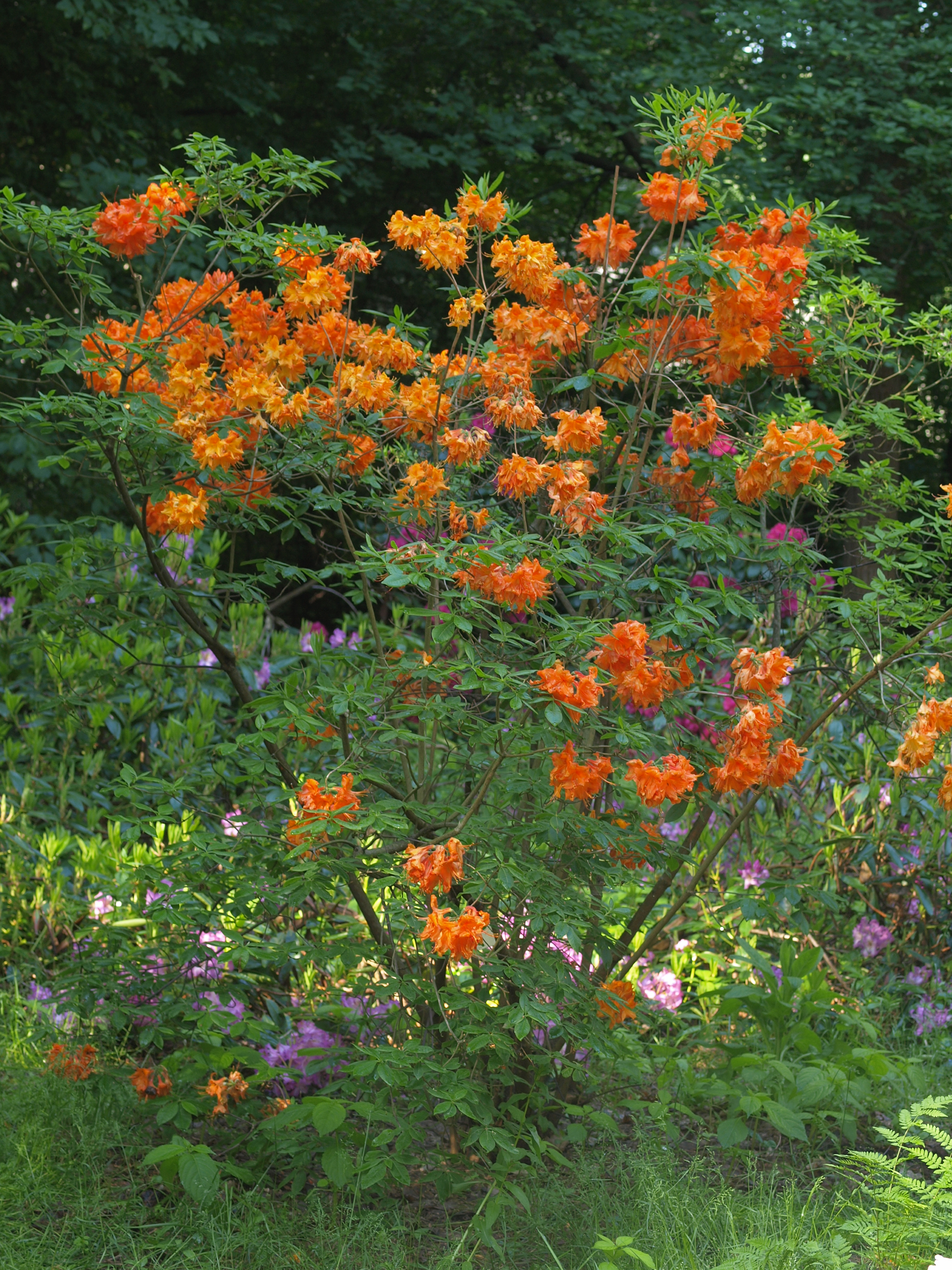 Morfoloģija. Vasarzaļš krūms. Augstums 2 m sasniegts 20 gados. Lapas matētas, zaļas virspusē, apakšpusē gaiši zaļas, eliptiskas, nosmaiļotas, līdz 7,5 cm garas un līdz 3cm platas. Ziedi stobrveida piltuvveida, 6,5-8,0 cm diametrā, sarkani oranžā krāsā ar lielu, dzeltenoranžu lāsojumu, ziedkopās sakārtoti pa 8. Zied maijā - jūnijā.